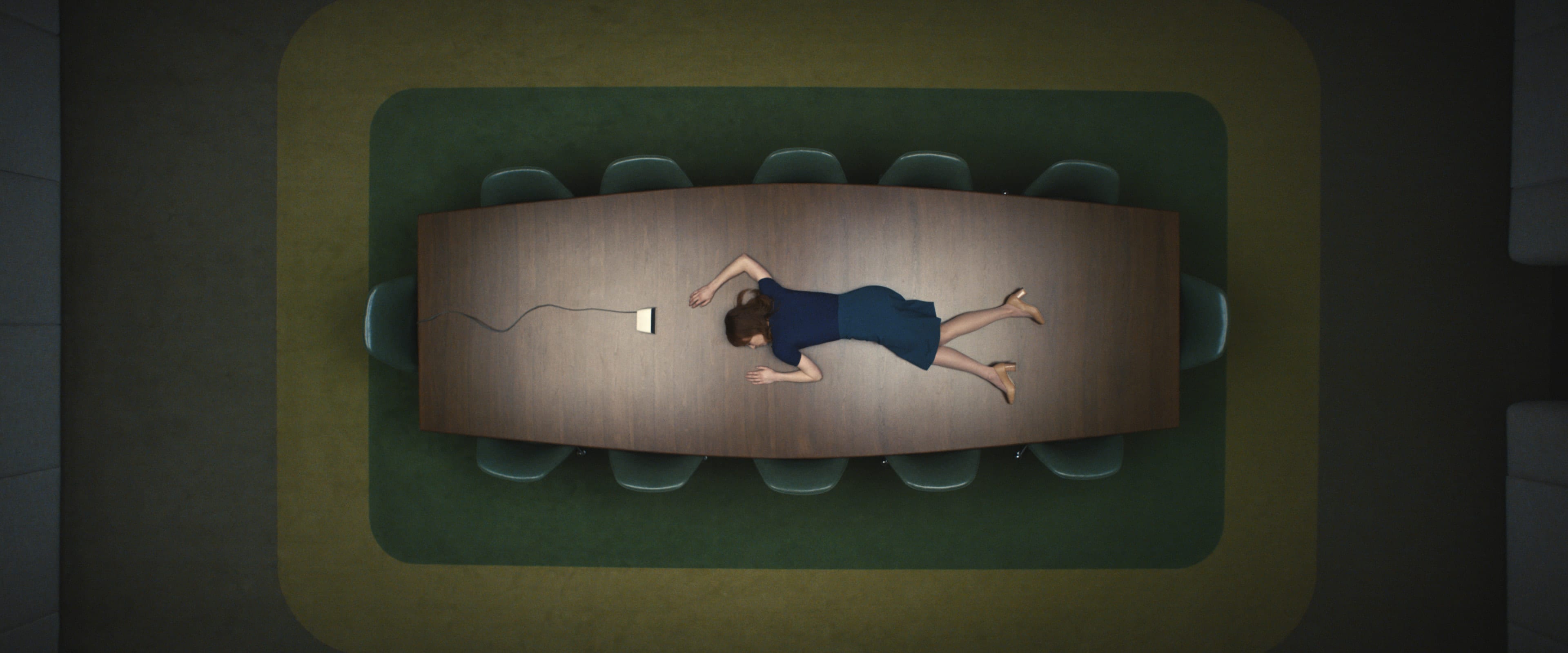 Adam Scotts små, nyanserte ansiktsbevegelser er stort skuespill. Inne er han nesten robotaktig glatt, mens ute ser du sorgen og depresjonen. Samtlige skuespillere er strålende, men jeg må trekke frem Patricia Arquette i rollen som den skumle sjefen. Jeg er glad jeg ikke skal treffe henne i det mystiske «break-room».