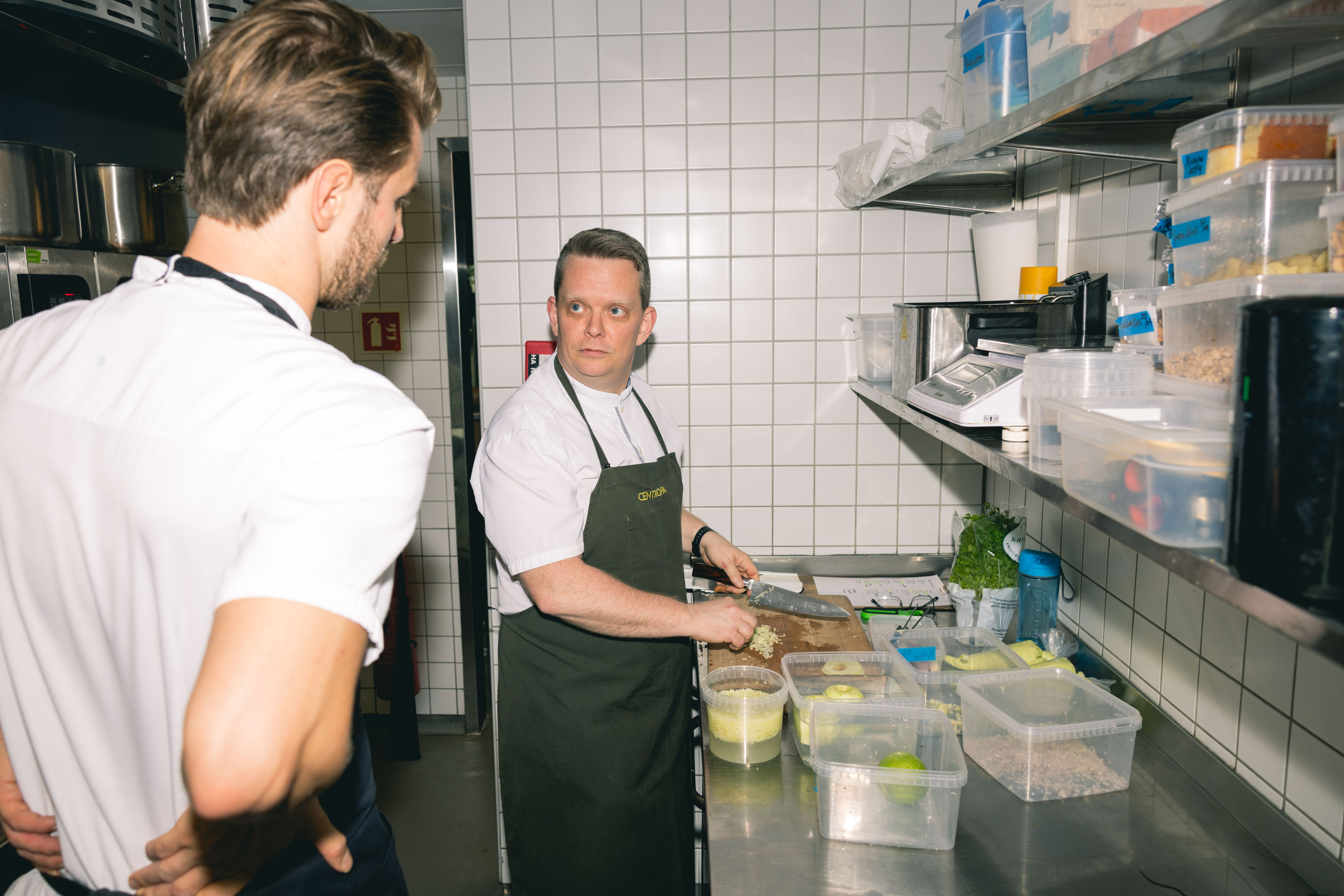 I slutten av 30-årene bestemte Torgrim Ruud (til høyre) seg for å bli kokk. Her sammen med kokkekollega Fredrik Strøm-Larsen på Centropa. Foto: Martin Slottemo Lyngstad / Aftenposten