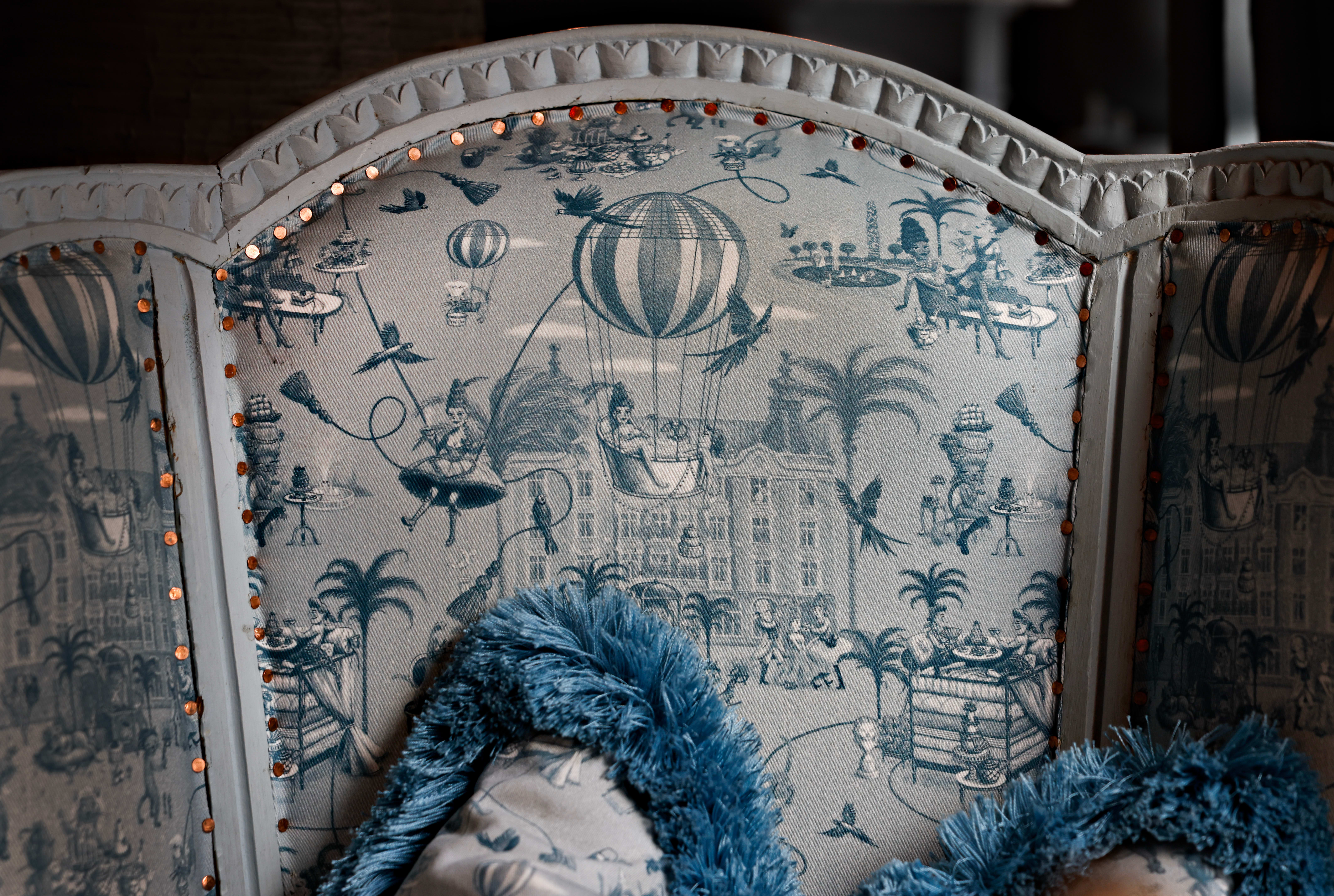 Til og med trekket på møblene har de designet selv. Det har detaljer fra bygningen og området rundt.