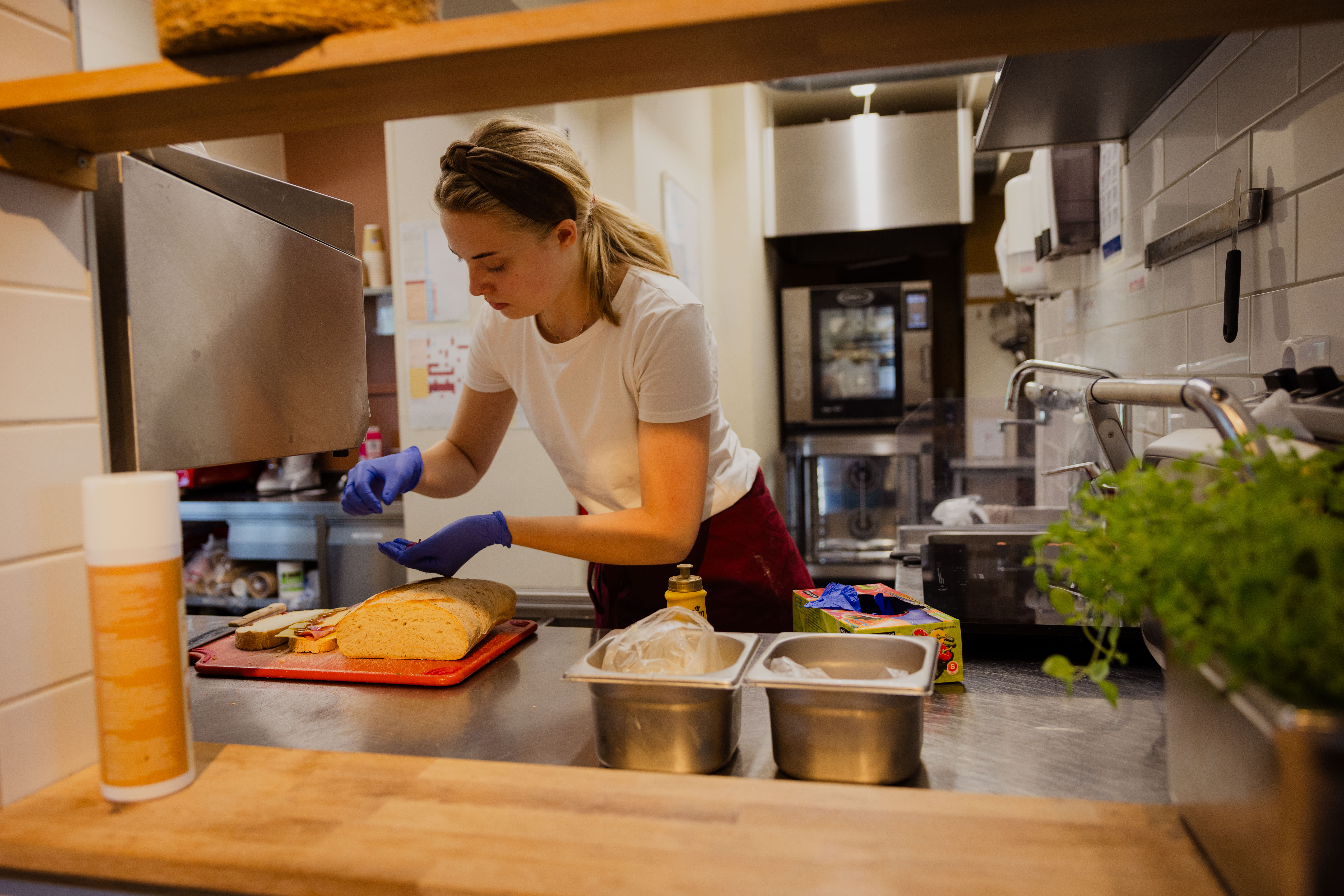 Alt tilberedes på kjøkkenet av Marie, som er den eneste på jobb denne dagen.
