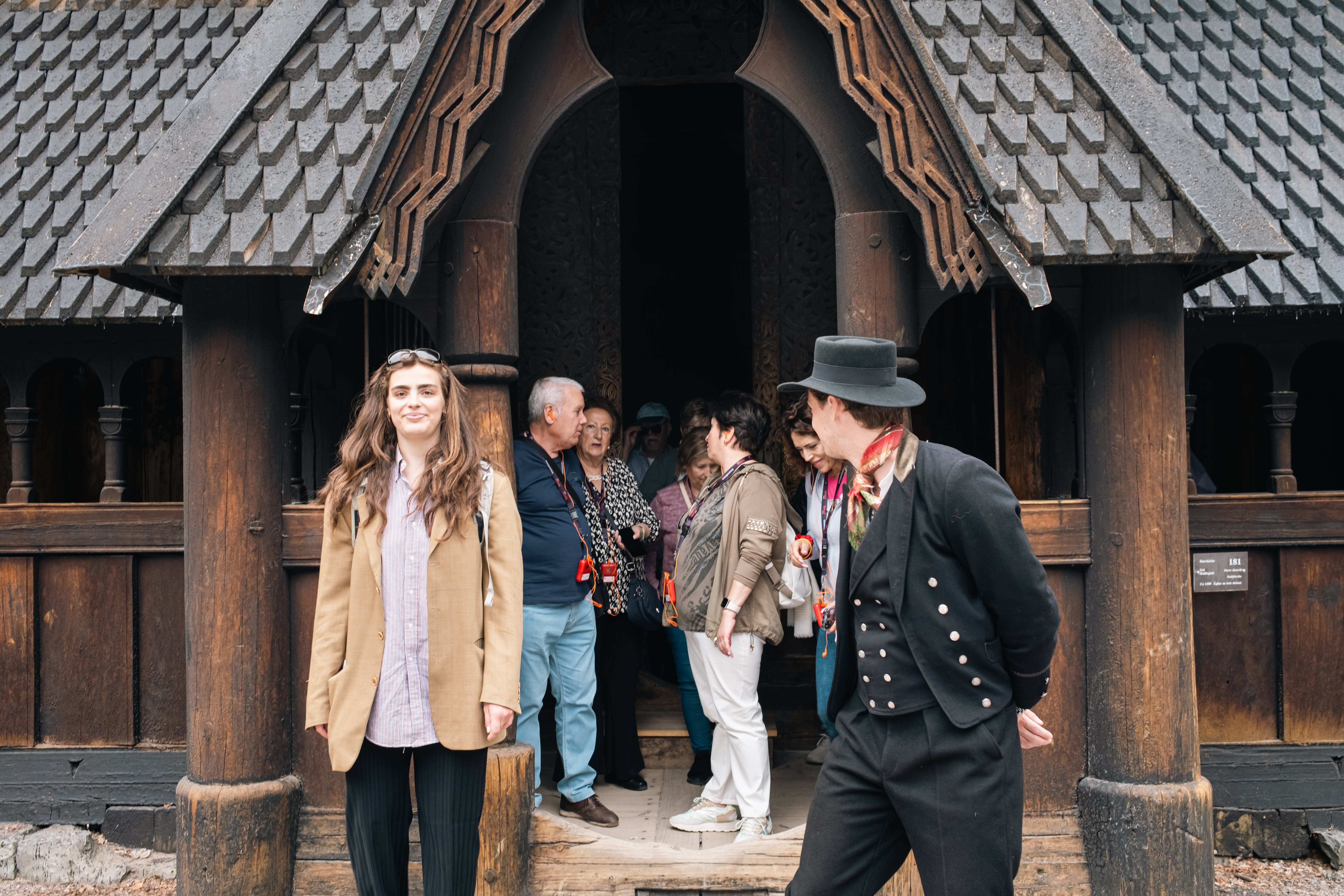 Utenfor stavkirken finner vi den italienske familien igjen. De klarte å hop-off til slutt.