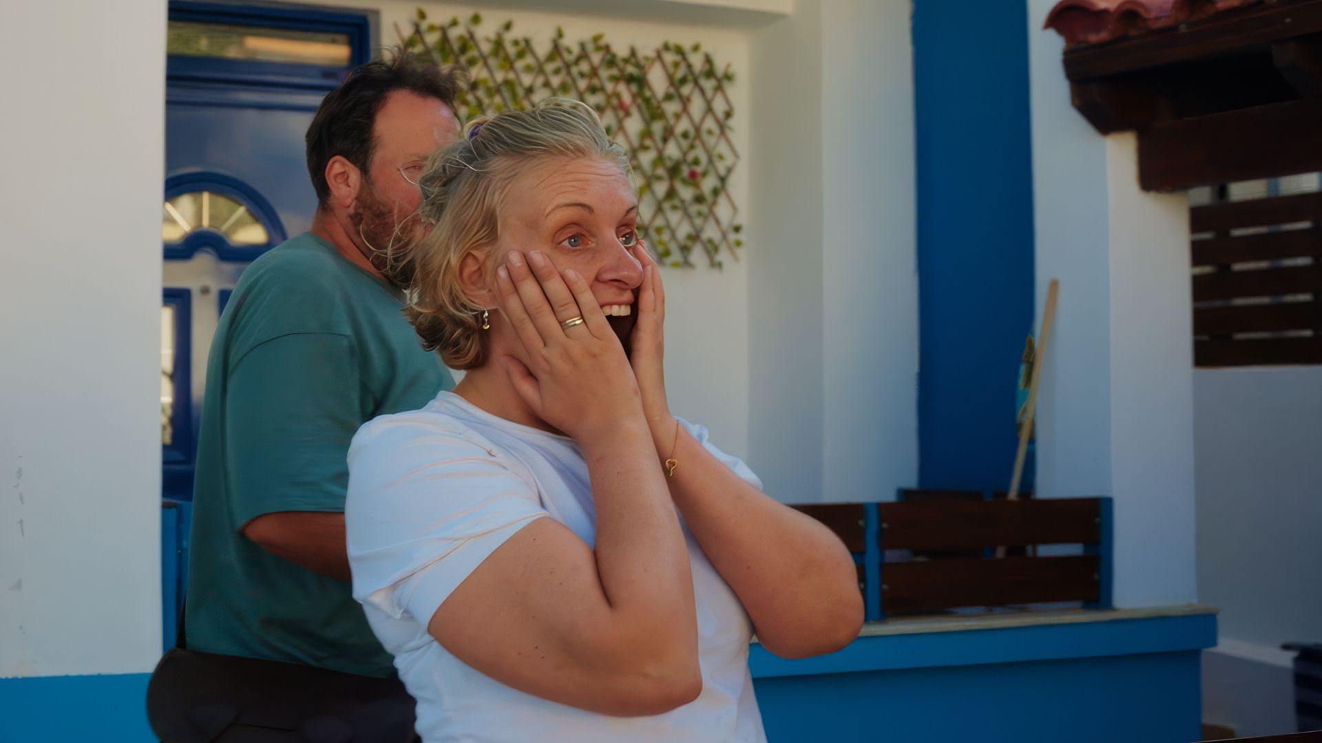 TV-profilene Ronny Brede Aase og Tuva Fellman elsker å feriere i Hellas. Nå vil de prøve å kjøpe et hotell her. Foto: Fahil Anweri / Fenomen/NRK