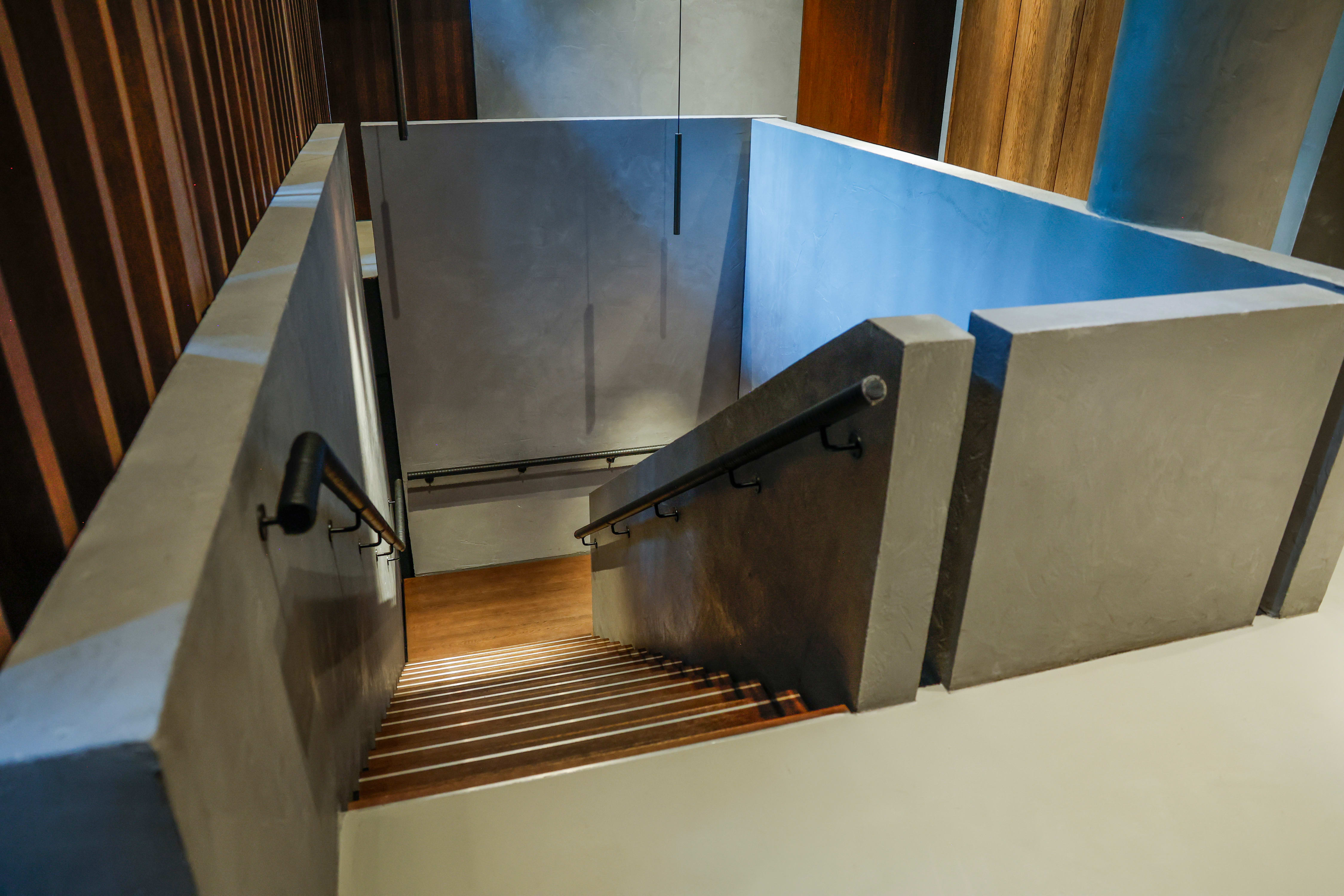 Innenfor dørene er det mørkt, som en slags gotisk hall. Vi følger servitørene noen trapper ned.