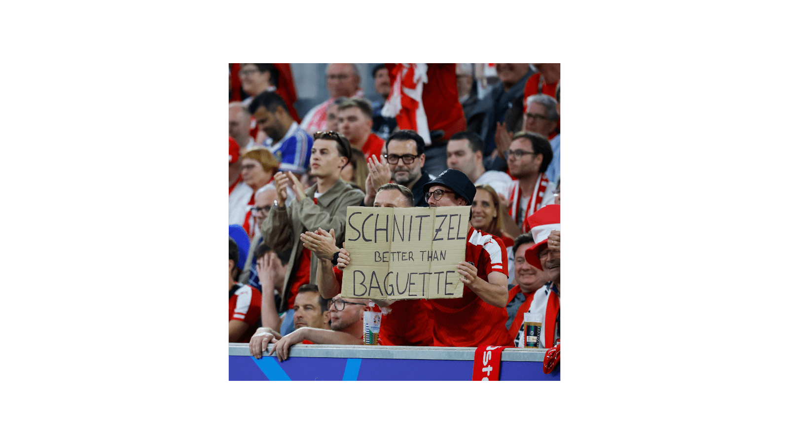 Østerrikere har på sin side knekt baguetter foran franske supportere. Bare se på dette: