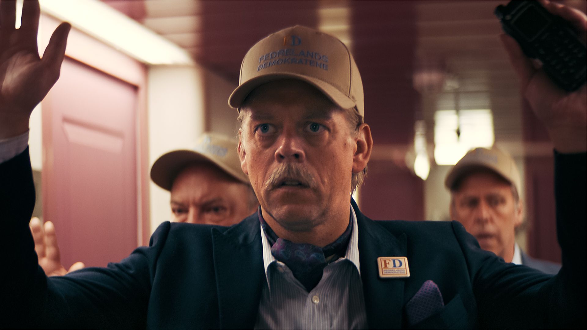Eller når radiokommunikasjonen om å gå ned i en kjeller avsluttes med «gisselet er i etasjen under, over». Tørr svarer at en kjeller ikke kan være under og over. Når den sprakende dialogen fortsetter med «gå ned i kjelleren under, over og ut» er kaoset komplett, men også rappet fra den kanskje mest kjente scenen fra «Hjelp vi flyr»-filmene.
