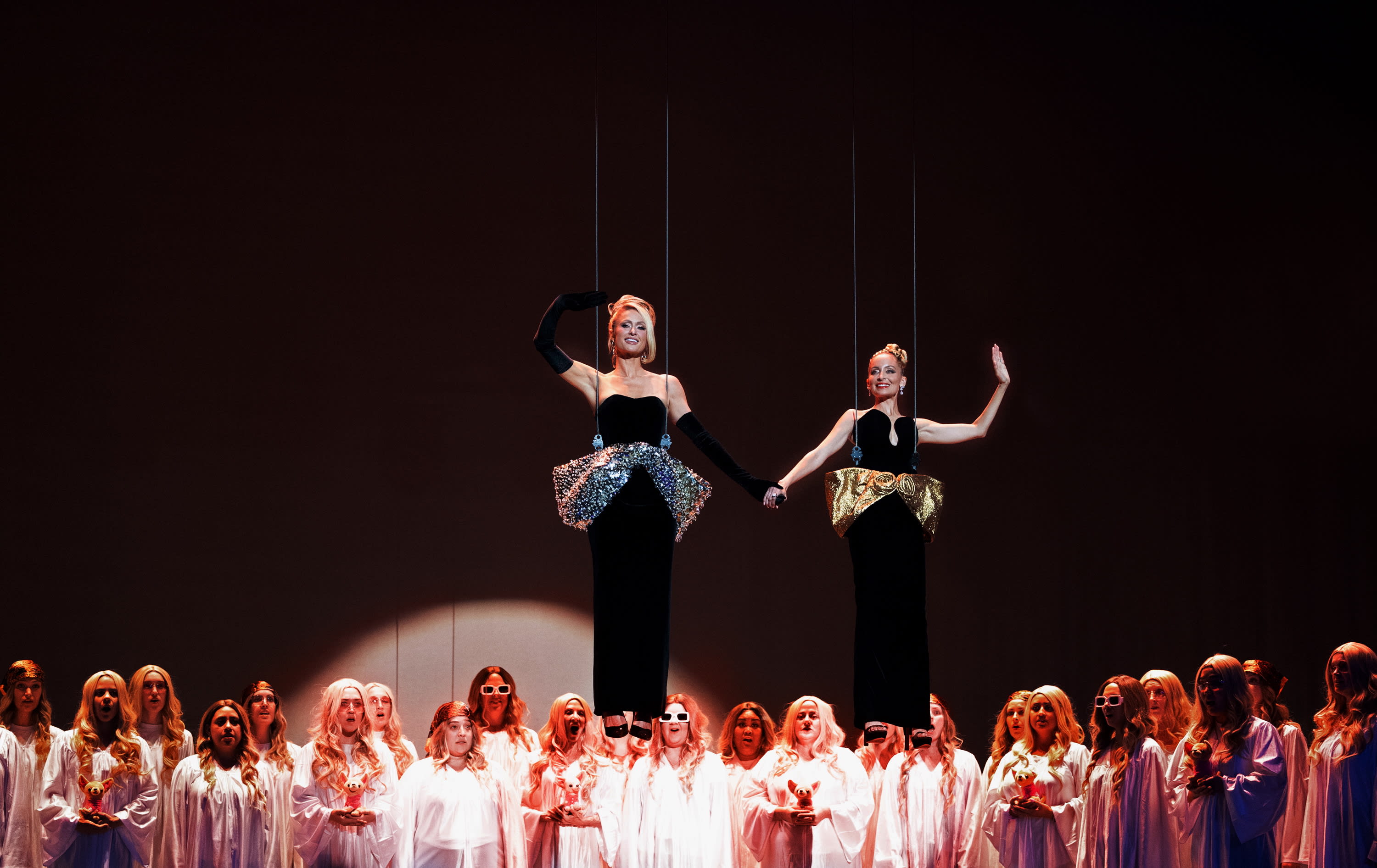 Paris Hilton (43) og Nicole Richie (43) setter opp sin egenkomponerte opera «Sannasa» i Los Angeles. Foto: Christine Bartolucci/Peacock/TV2