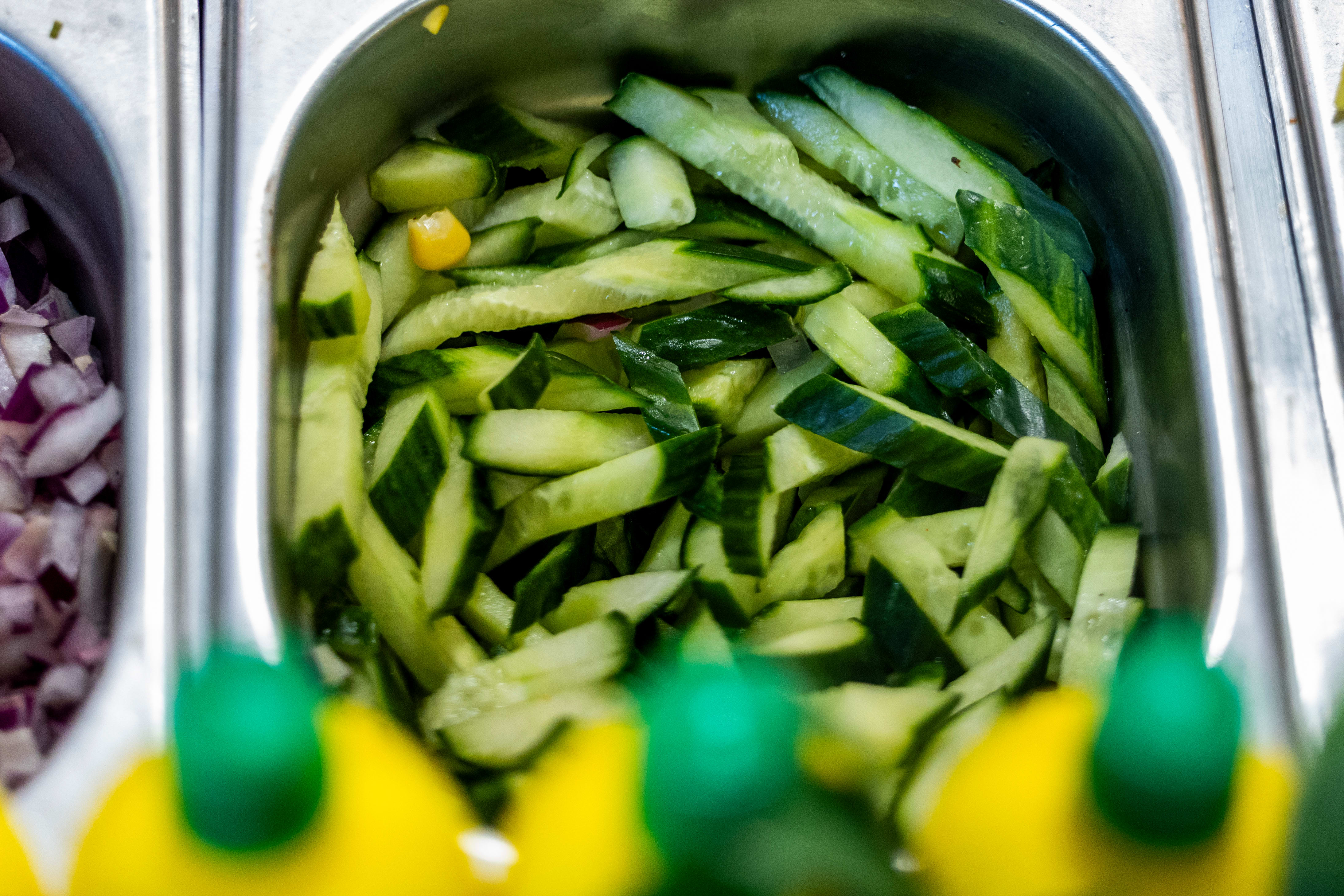 Eller kanskje det er dressingen, rødløken, tomatene eller salaten?