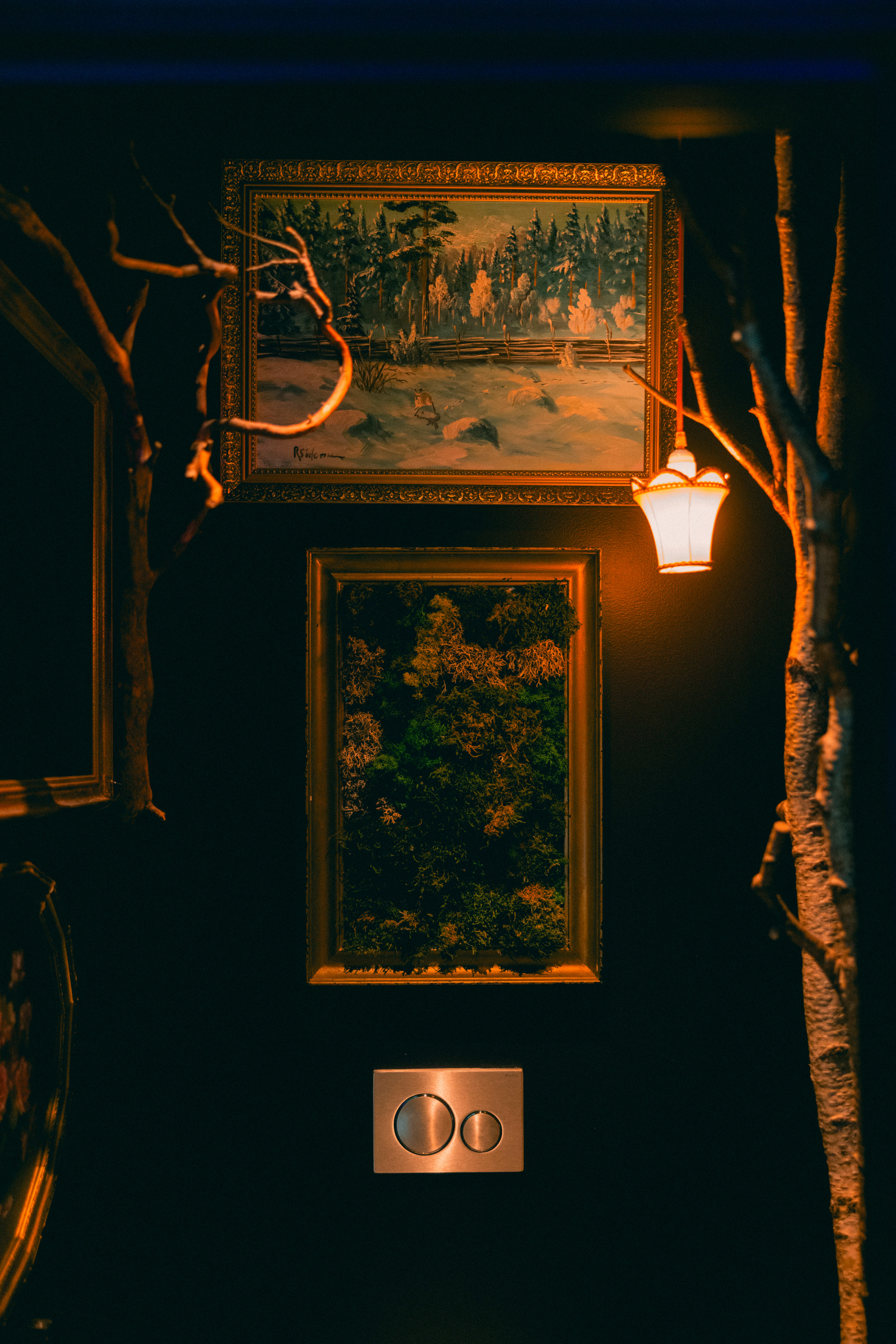 Barsjefen har fått dekorer sin båse med to trær, noe mose og et landskapsmaleri. Foto: Ronja Sagstuen Larsen / Aftenposten