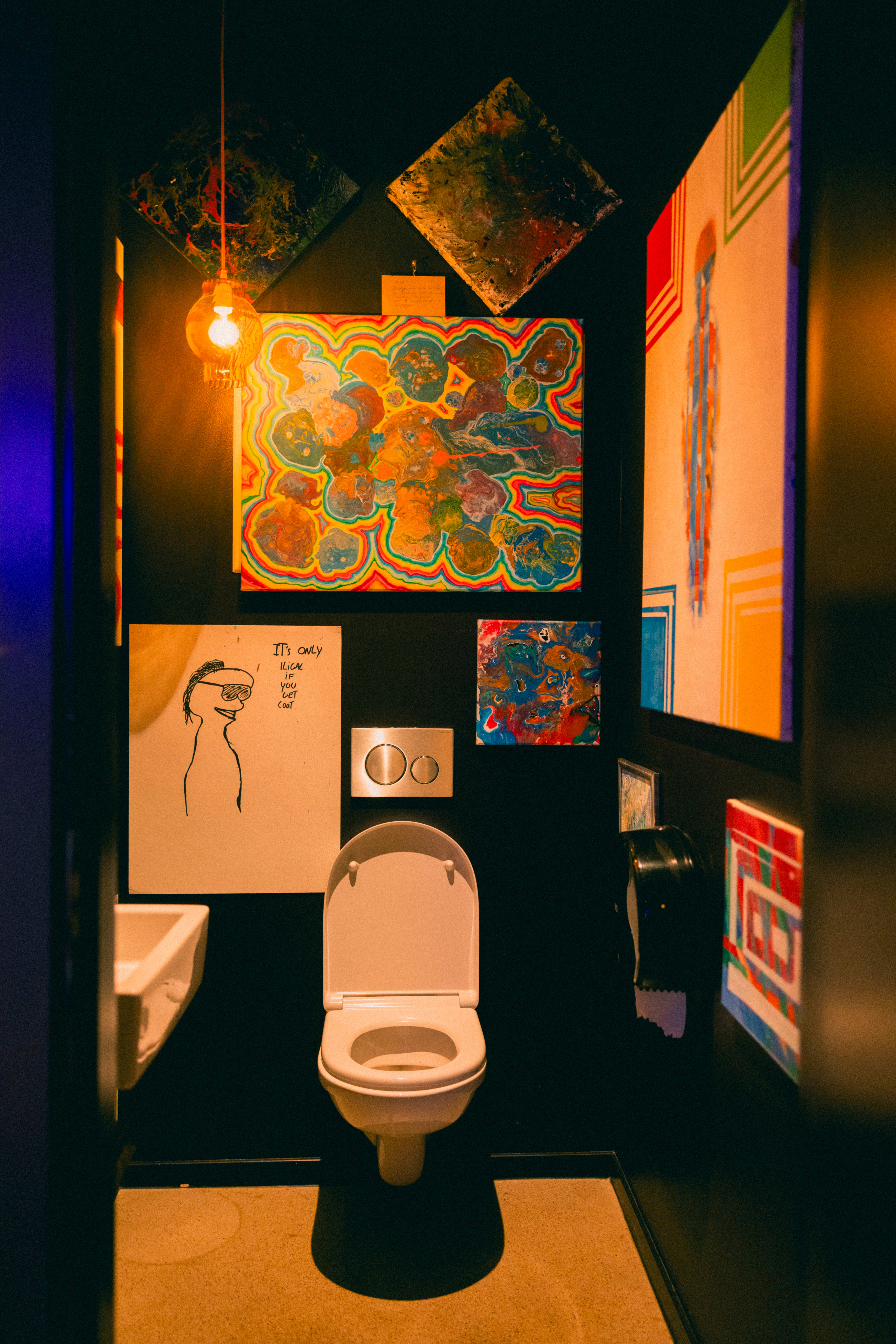 Og hva er vel et guttekollektiv uten en dartskive og piler? Spill er naturligvis med! Lekent er det også på toalettene. De forskjellige båsene er nesten som soverom. Alle har ulik stil som representerer 200-personalet.