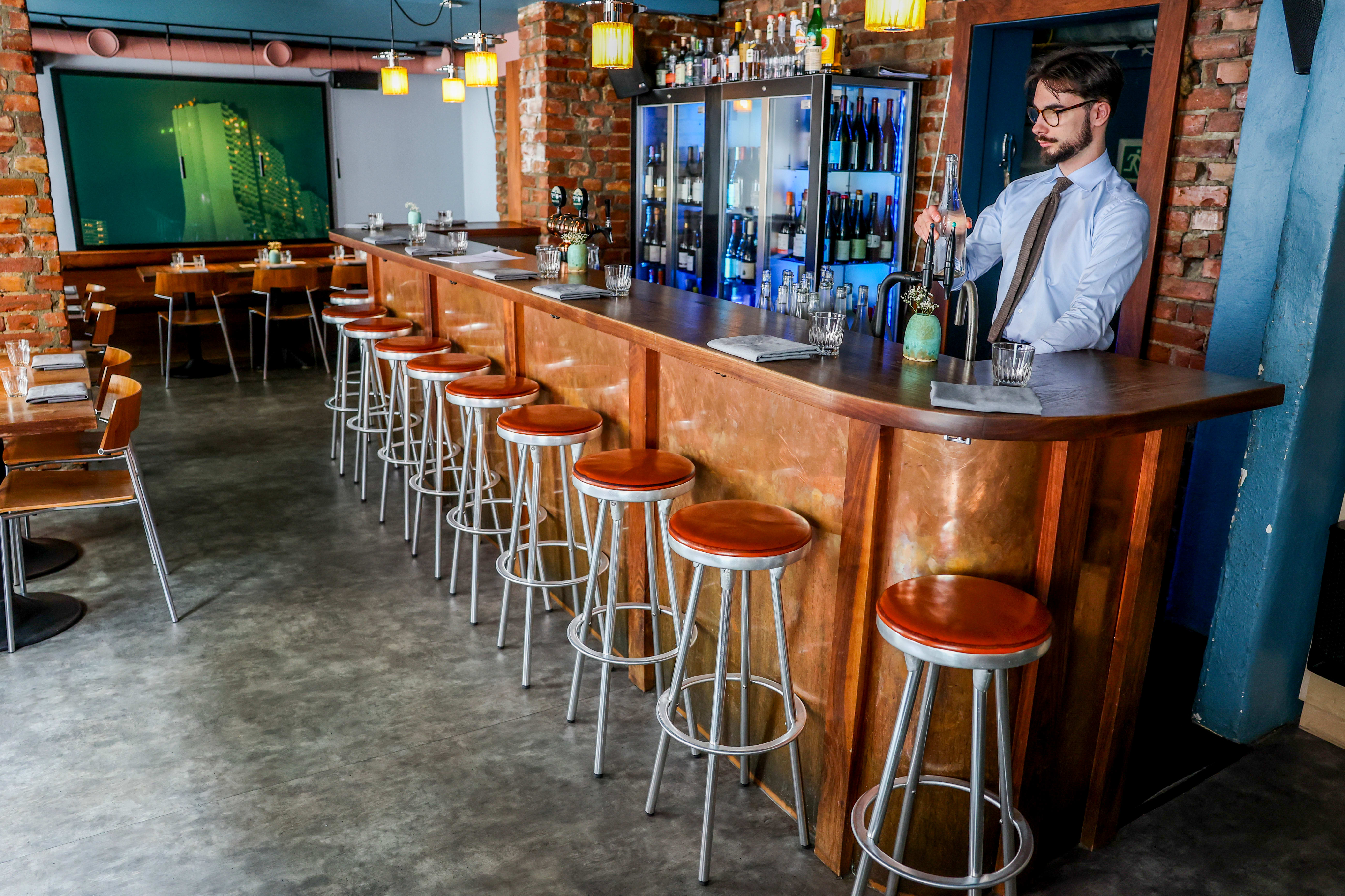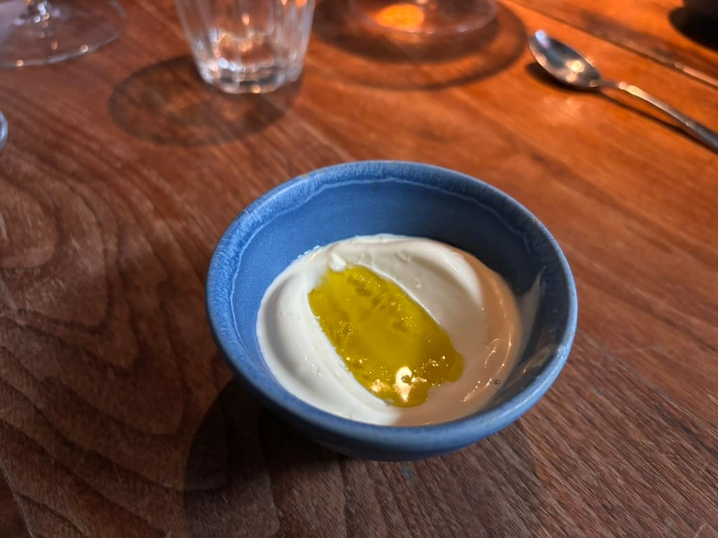 Så av en nesten TGI Fridays-aktig velkomst. En hypervennlig servitør spør om vi har bestemt oss for hva vi vil starte med i glasset og jubler «THANK YOU SO MUCH» når hun får svaret. Merkelig. Men vi smiler i det minste. Og det skal vi gjøre resten av kvelden også – for etter overrumpling følger kulinarisk overkjøring (på den gode måten).