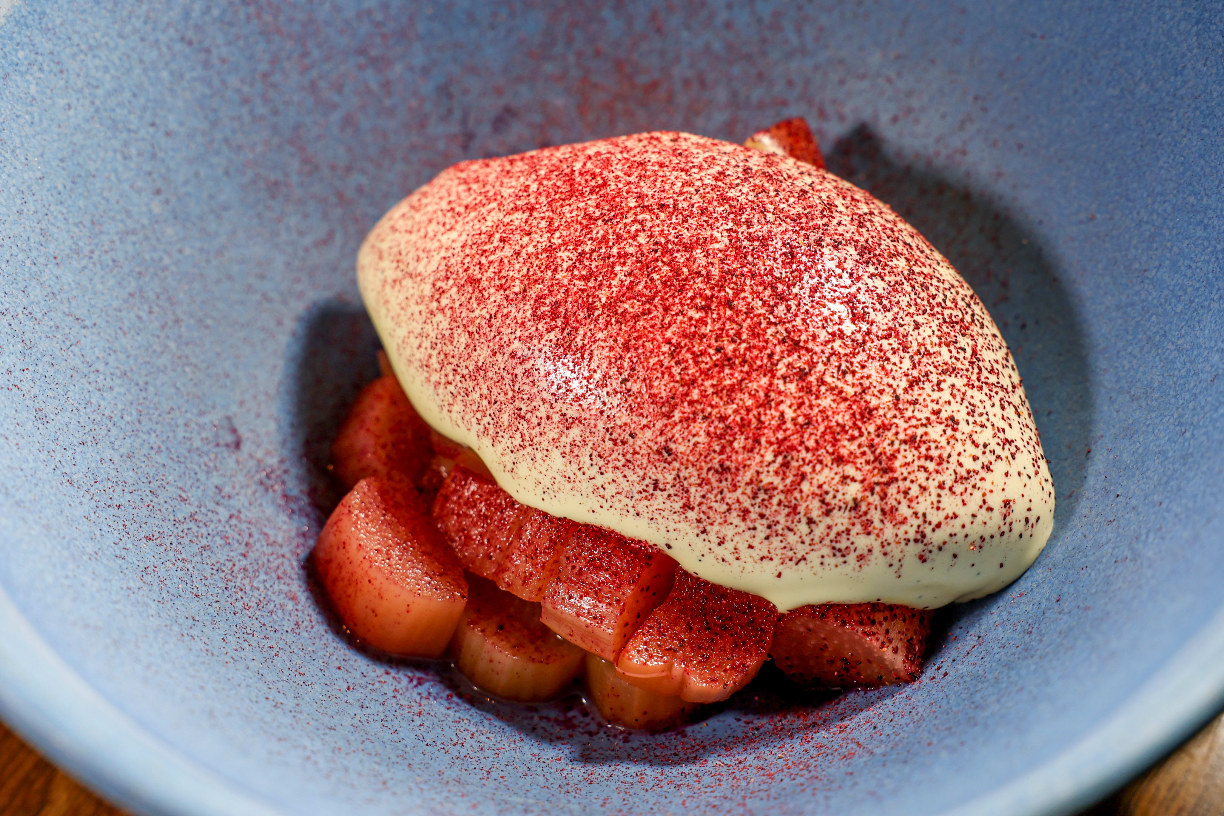 Det passer uansett bra at den andre desserten er et publikumsfrieri. Rabarbra med en yoghurt- og ingefærsorbet er en frisk utgang på måltidet.
