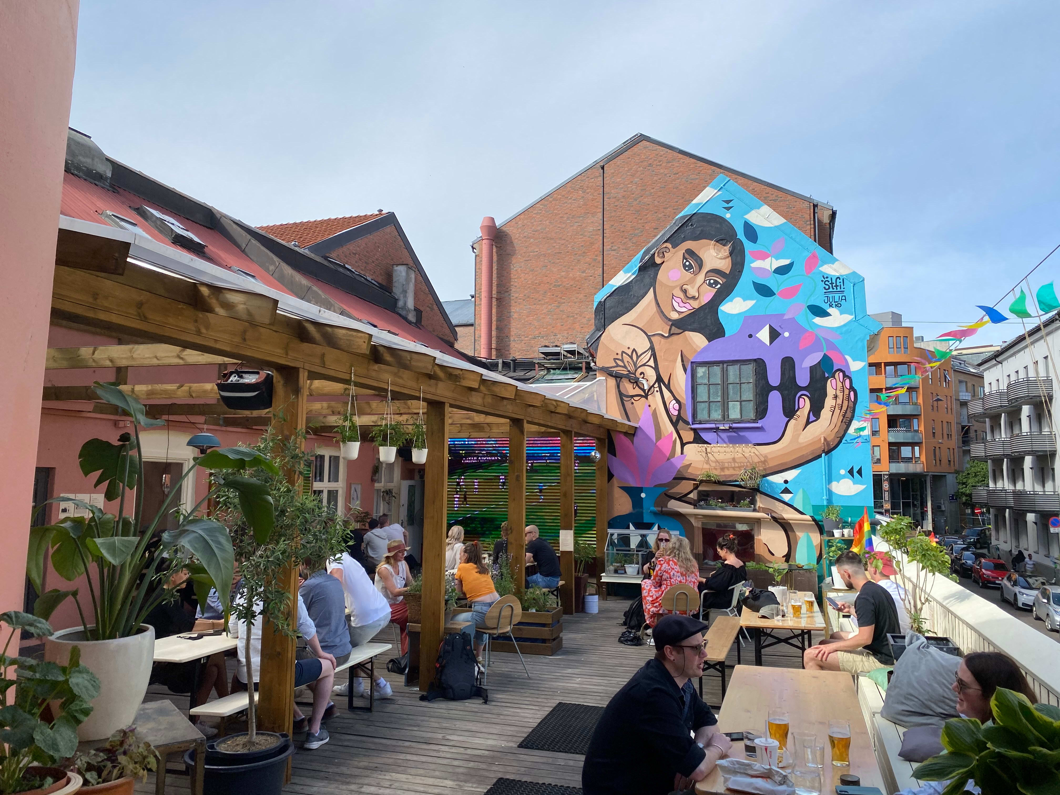 Utestedet Godthåb på Grønland måtte legge ned tidligere i år. Men lørdag kan du igjen bevege deg i takt med musikken i de samme lokalene. Fra kl. 15 blir det melodisk techno, gratis frukt og salg av vegetarisk fingermat. Vil du også fylle some-kontoene dine med innhold, kan du ta shooten foran det meeeeget fotovennlige veggmaleriet som preger takterrassen.