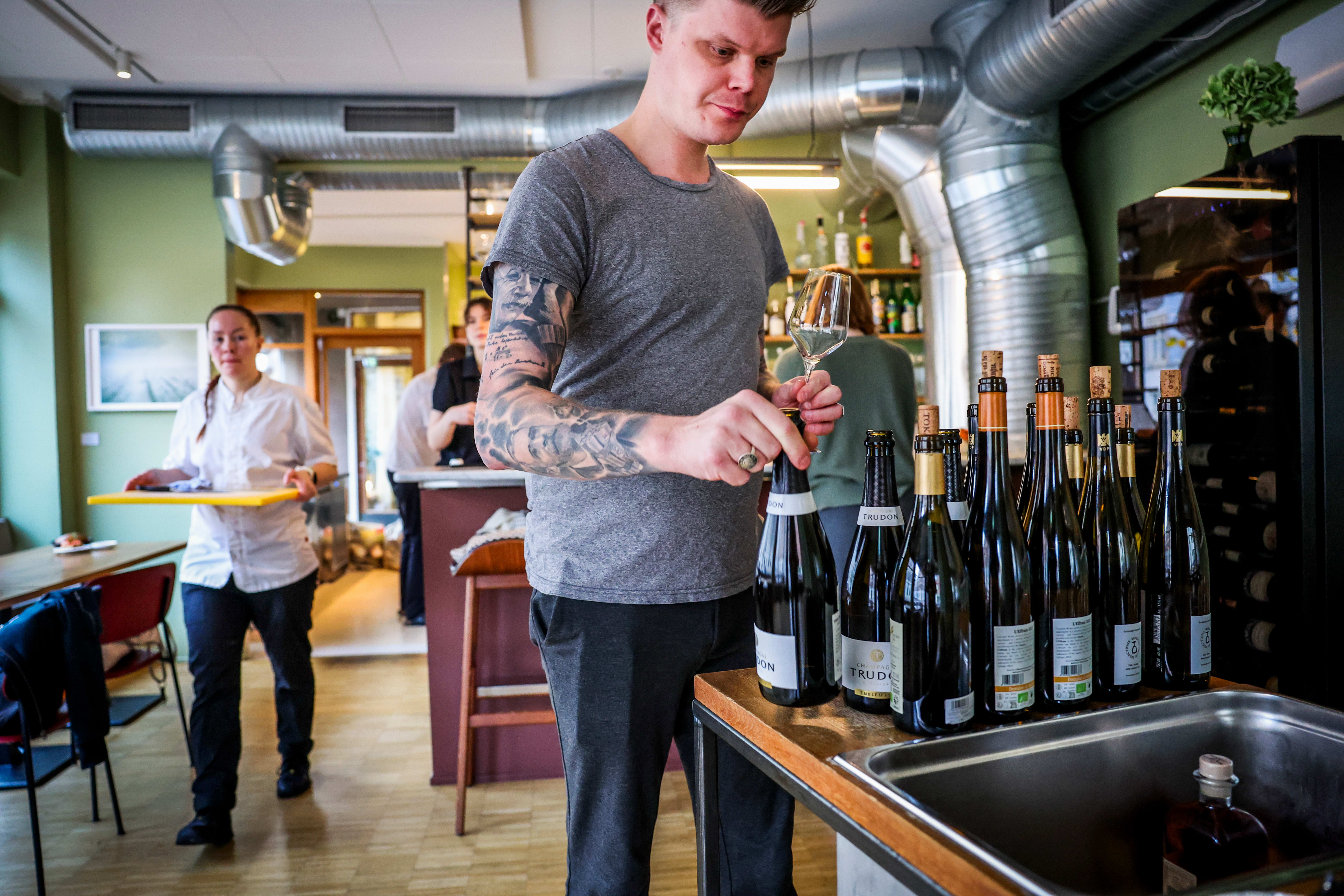 Vink kåret servicen her til Oslos beste i fjor. Sommelier Erlend Lehland bidro sterkt til det. En imøtekommende og uanstrengt type, men gjennomkompetent. Det gjorde ham til en av landets beste.