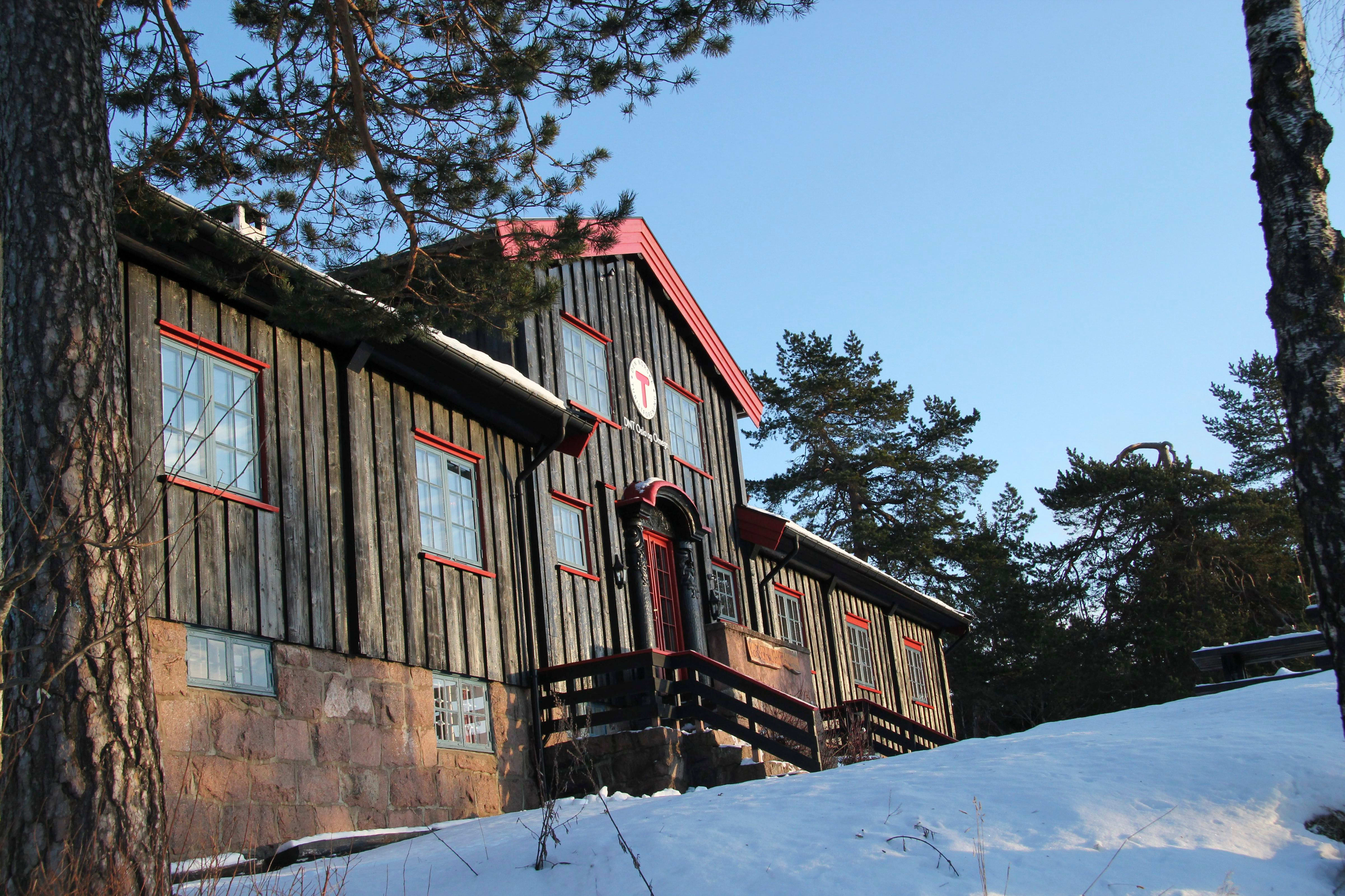 Kobberhaughytta, DNTs storstue, ligger høyt sørvest i Nordmarka, med panoramautsikt over Sørkedalen, Bærumsmarka og den sørlige delen av Krokskogen. Foto: Maria T. Pettrém