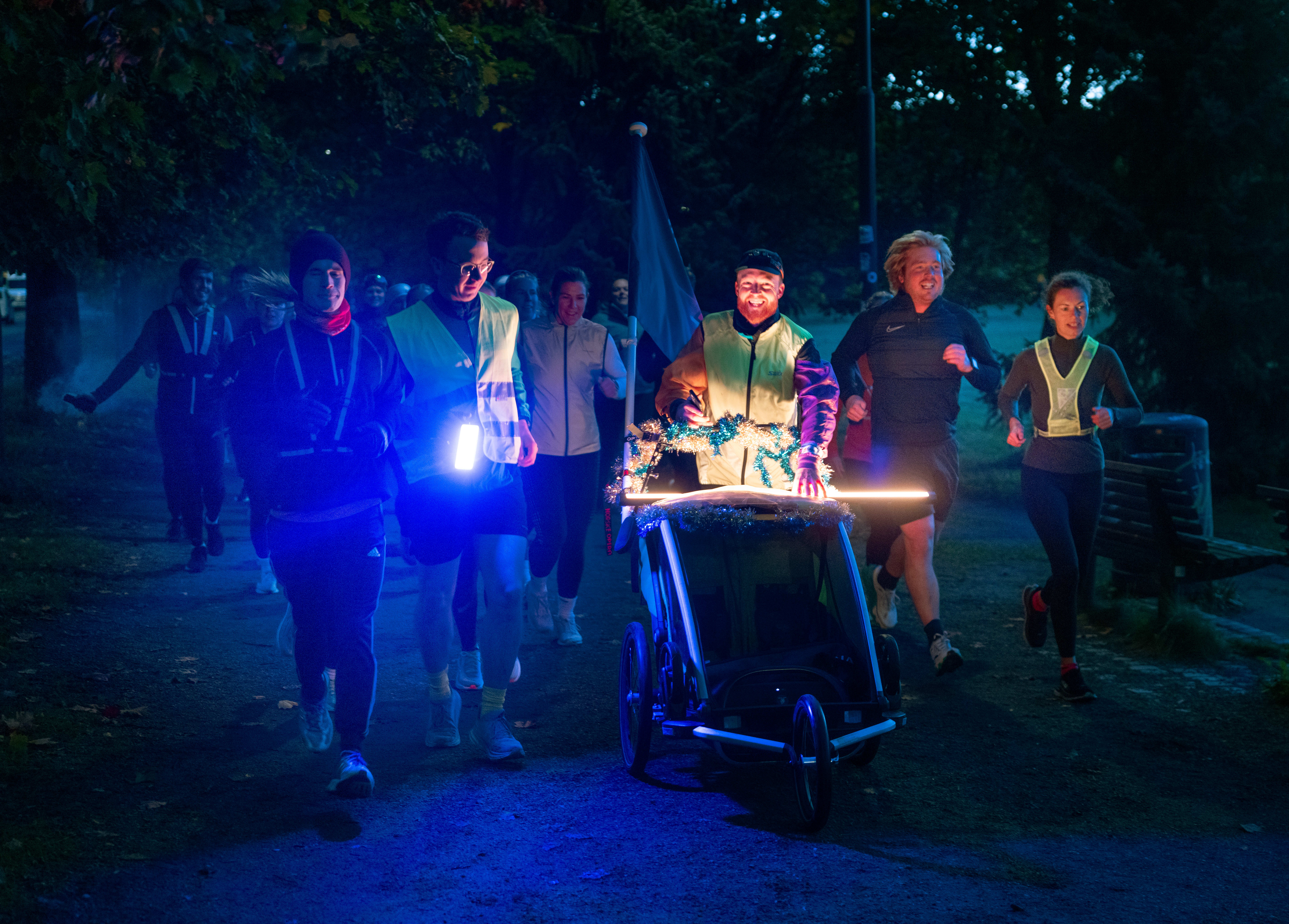 ... Og diskolys før klokken 07, mener Thomas Engeset. Han er sjef for en av byens ferskeste løpegrupper: «Vaffeljogg». Og han har akkurat lagt til en ny aktivitet: «Forbanna tidlig diskojogg»:
