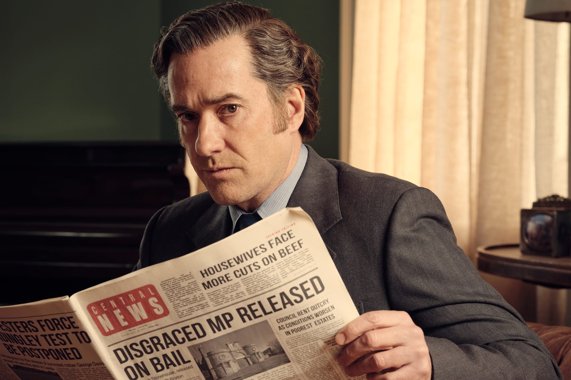Matthew Macfadyen er perfekt i rollen som John Stonehouse. De fleste kjenner ham som Tom i Succession. Der har han herjet med naiv sjarm og arrogant uvitenhet i tre sesonger. Som John Stonehouse bruker han samme kvaliteter.