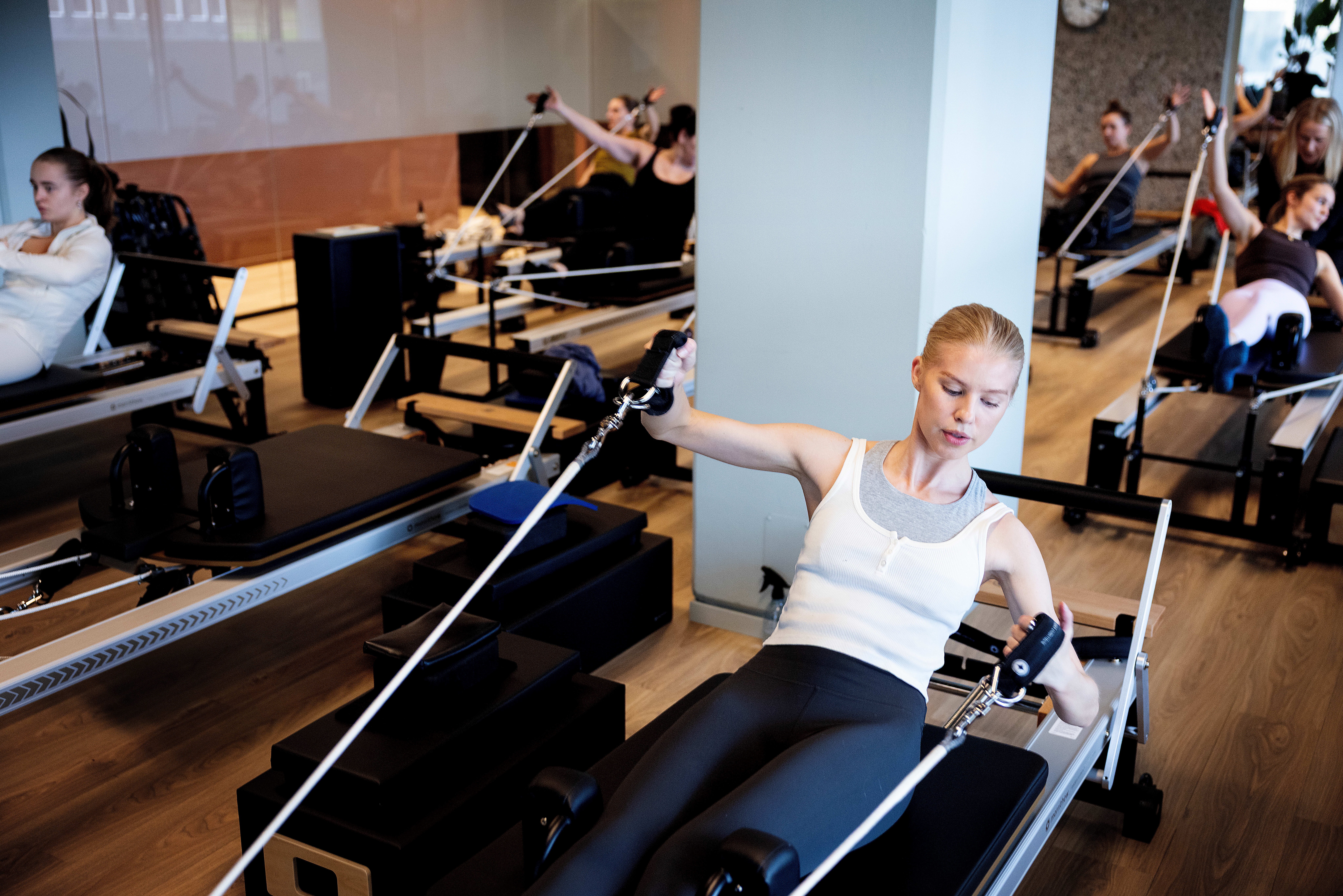 På populære studioer må en ofte booke timer til reformer én uke i forveien. I midten av mars åpner også Sats Bislett for gruppetimer med reformer. Tonje Kristenstuen er gruppetreningsansvarlig i Sats.