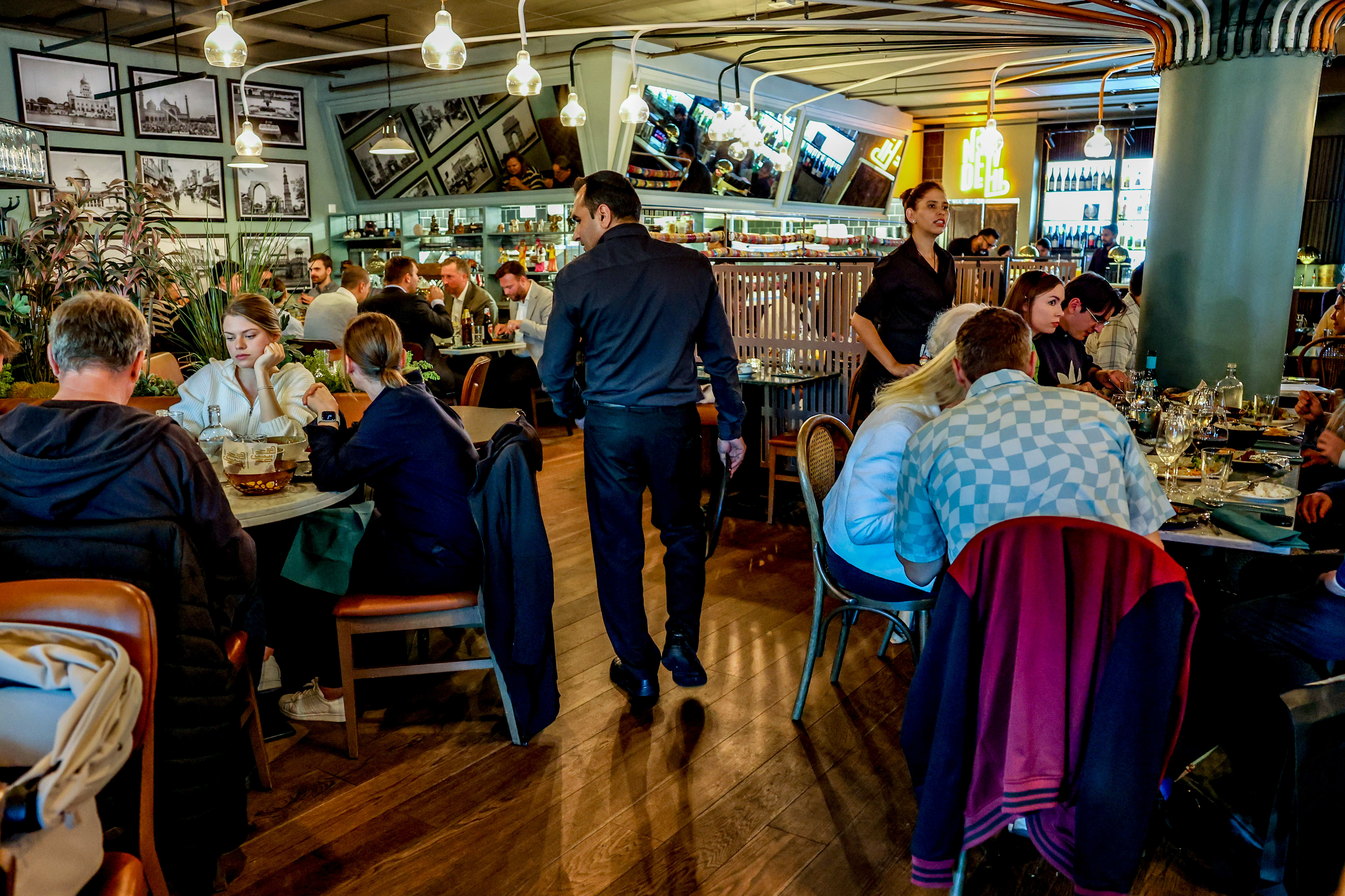 2. Servicen er god. Restauranten er stor, med mange små og store bord som krever oppmerksomhet. Likevel tar det ikke lang tid før vi får mat eller blir spurt om vi vil ha mer drikke. De andre gjestene er også fornøyde. Servitørene forklarer rettene effektivt, men med omtanke.