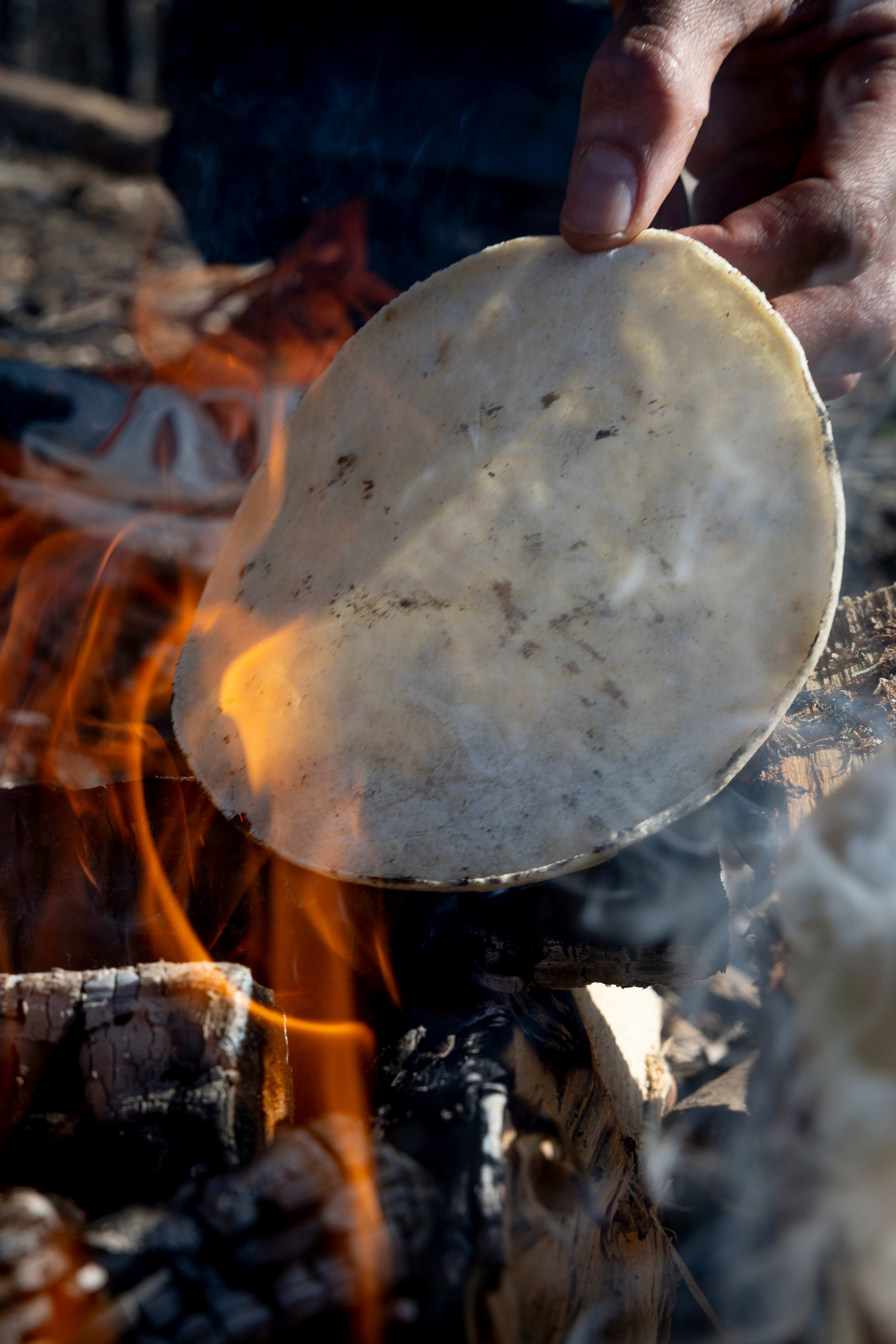 Første tortilla fikk litt overtenning og ble et offer til bålgudene. Her er forsøk nummer to.