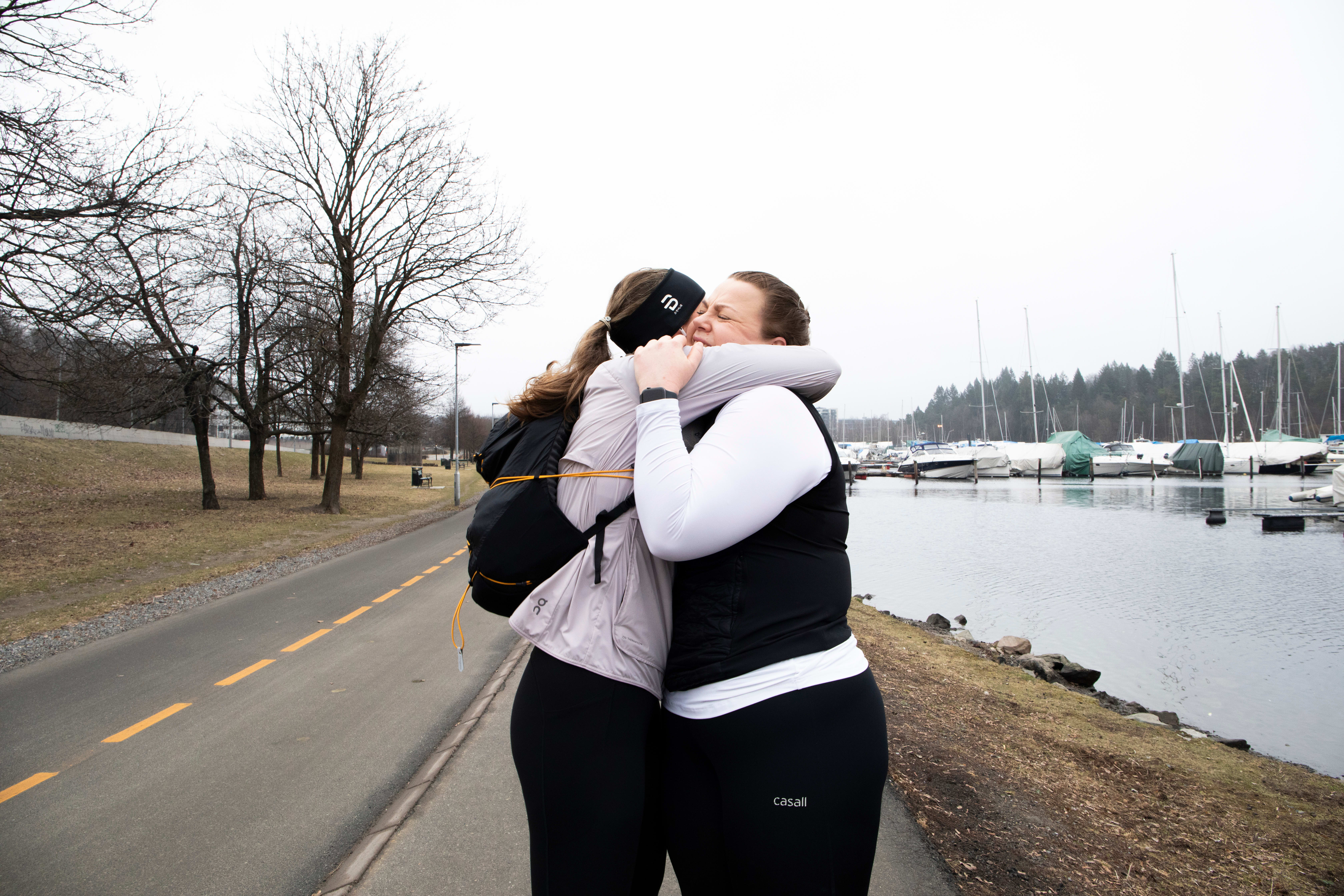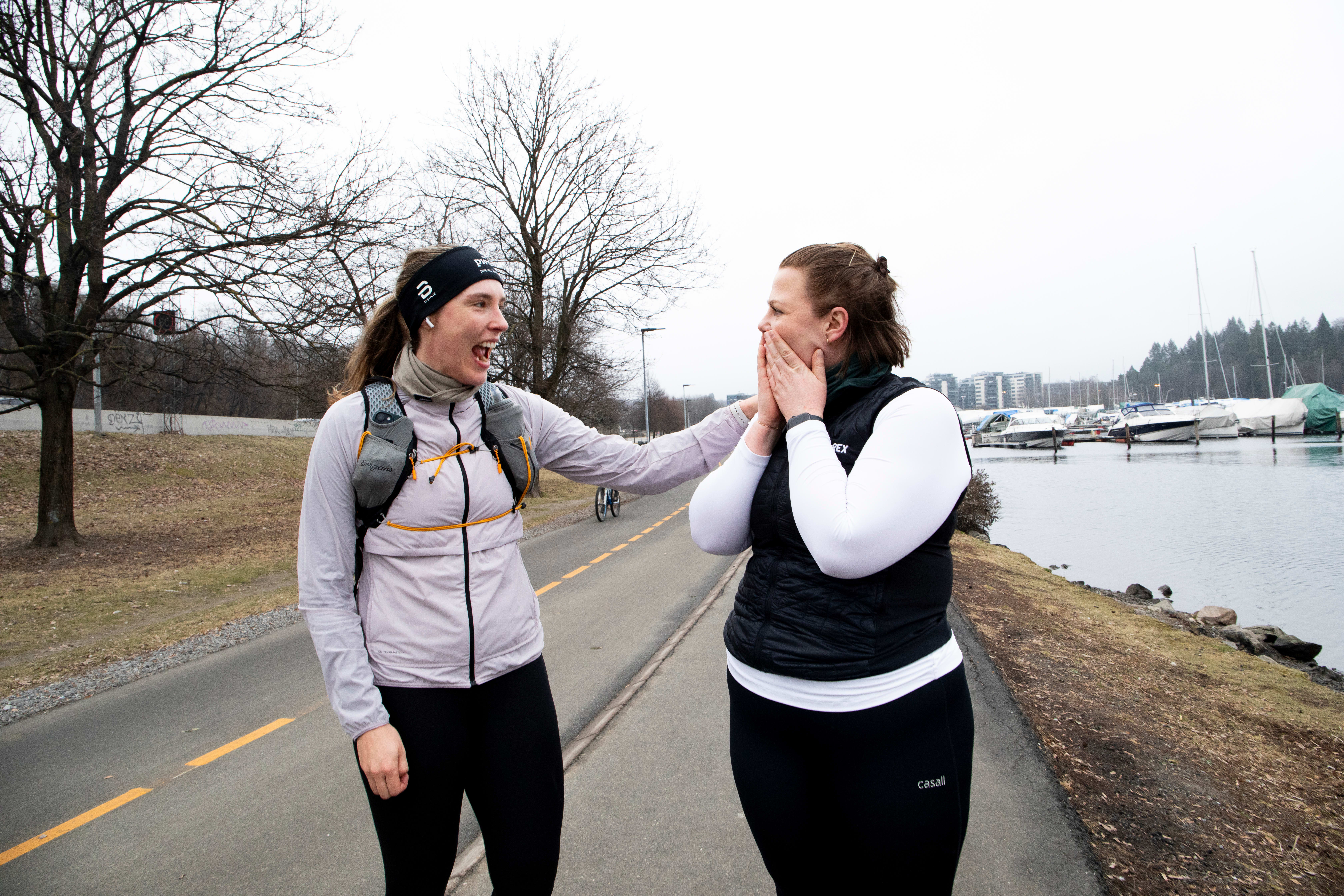 Humor er et av Kristensens viktigste virkemidler for å spre løpeglede til sine godt over 2000 Instagram-følgere. Hun ønsker å være en ambassadør for dem som løper sakte. At du ikke trenger å ha en bestemt kroppsfasong eller fart for å kalle deg en løper. Og apropos, mens vi løper langs Frognerkilen, møter vi en tilfeldig fan: