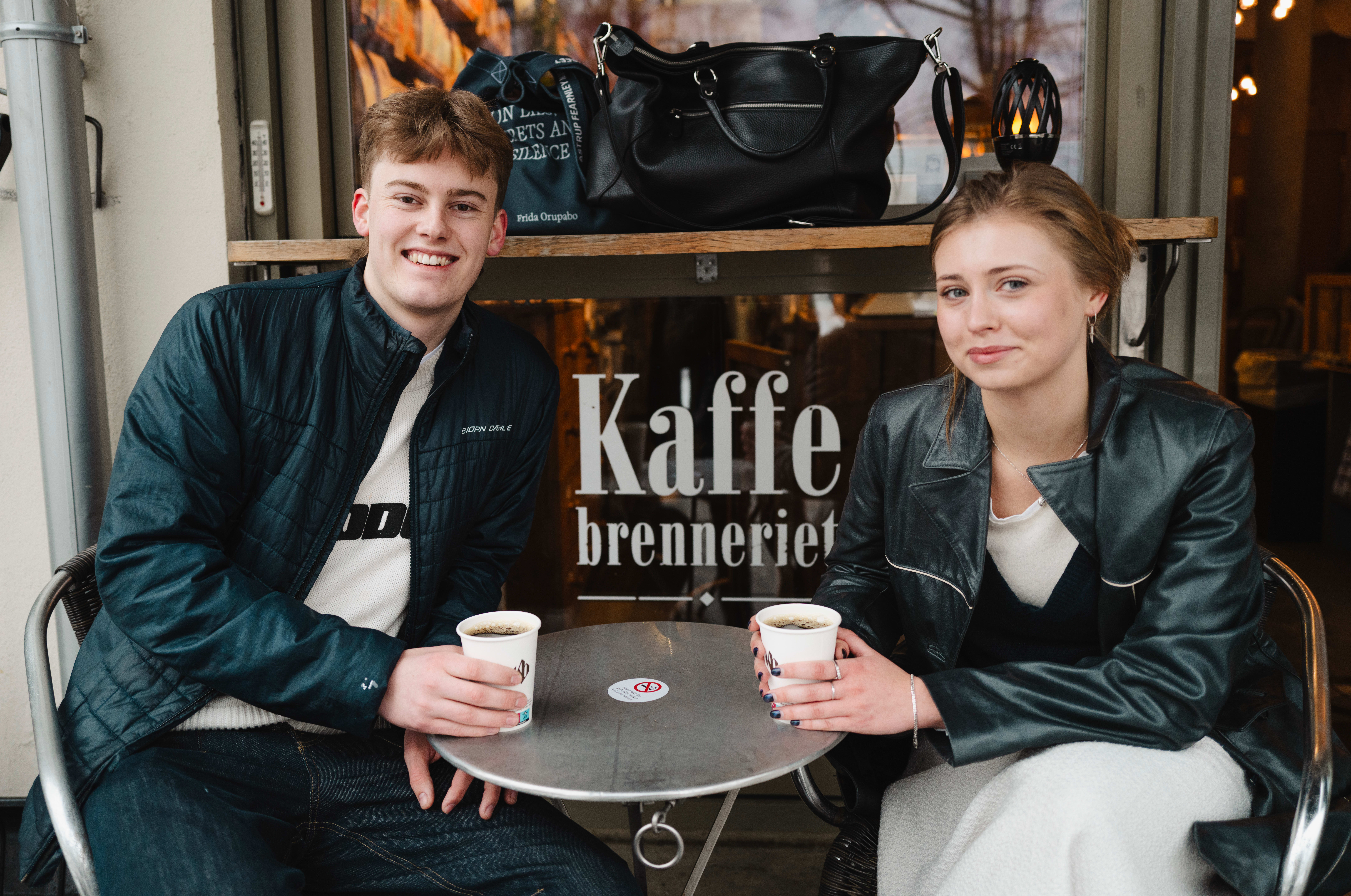 Han og Ingebjørg Bjørnarå har slått seg ned på Kaffebrenneriet. Også de synes prisen på en helt vanlig svart kaffe er blitt for høy. På Kaffebrenneriet koster en liten kaffe 39 kroner, en mellomstor 45 og en stor 49 kroner.