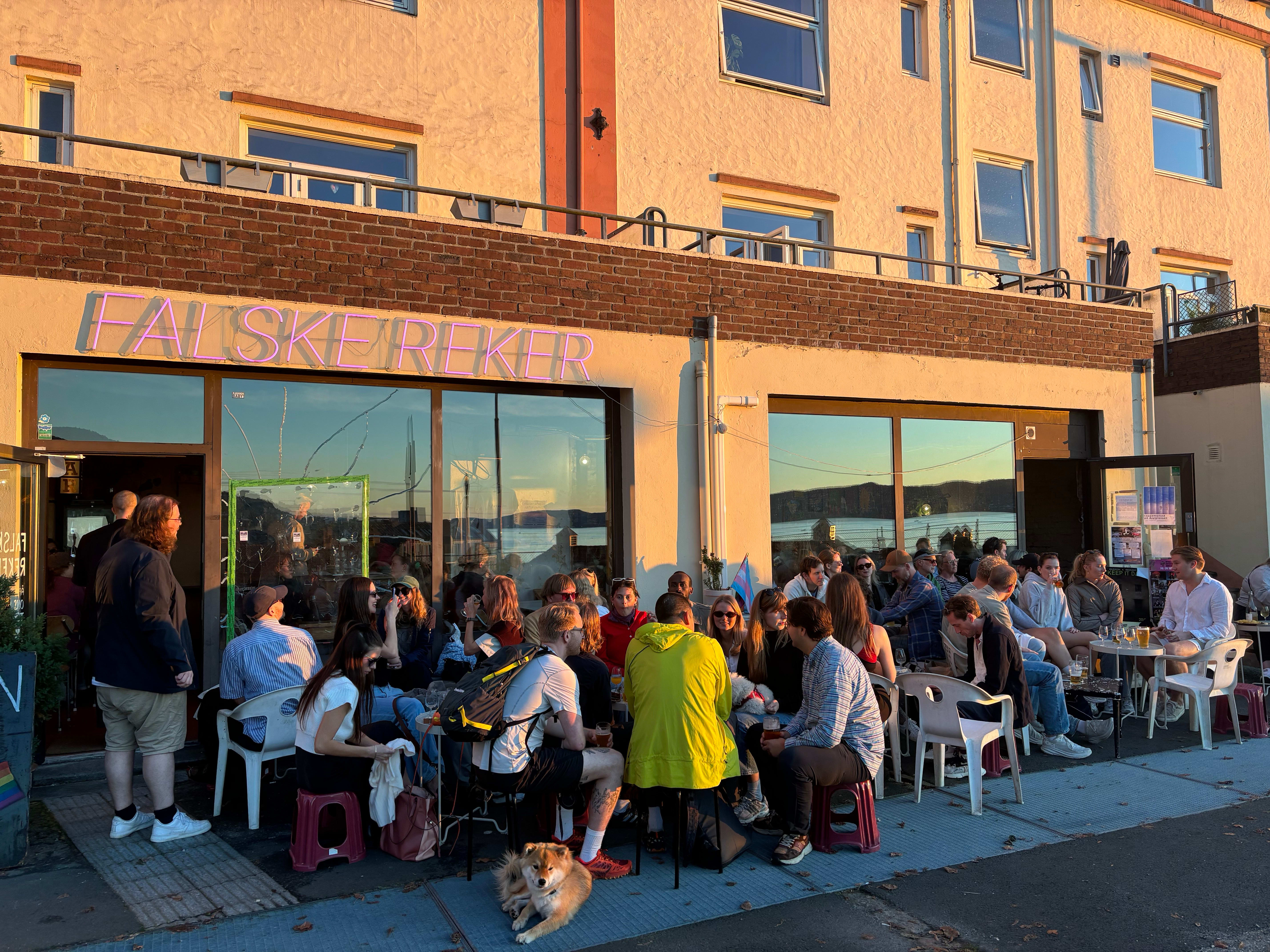 FALSKE REKER: Københavnske vibber, sjøutsikt og kveldssol i Sandviken. Riktignok ikke supersentralt, men absolutt verdt omveien. Kafé på dagtid, vinbar på kveldstid. Hipt lokale, hyggelig uteservering. En meny full av snilt prisede naturviner og strålende småsnacks. Folkene bak driver også egen vinimport fra små produsenter av naturvin og har hyppige vinsmakinger.