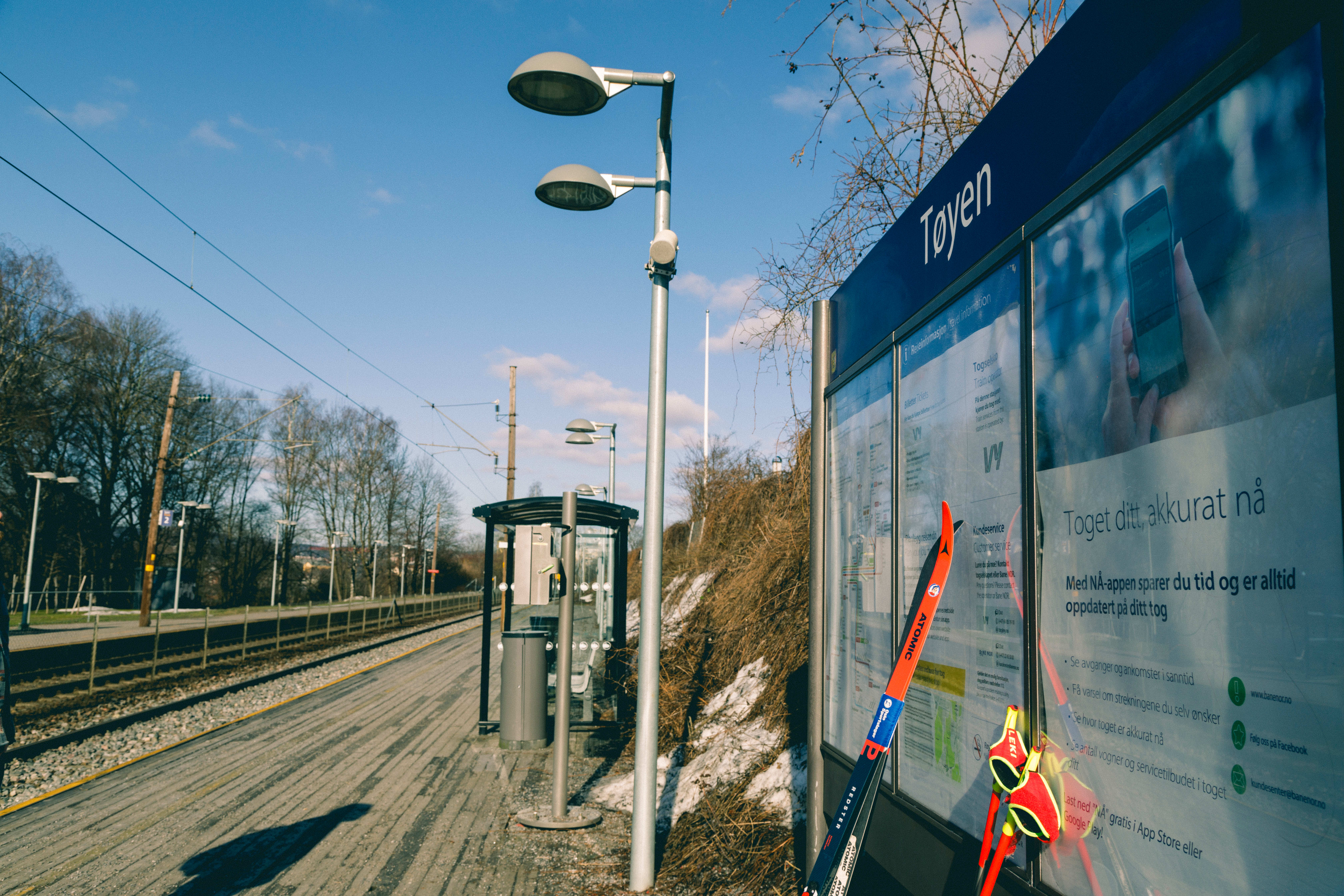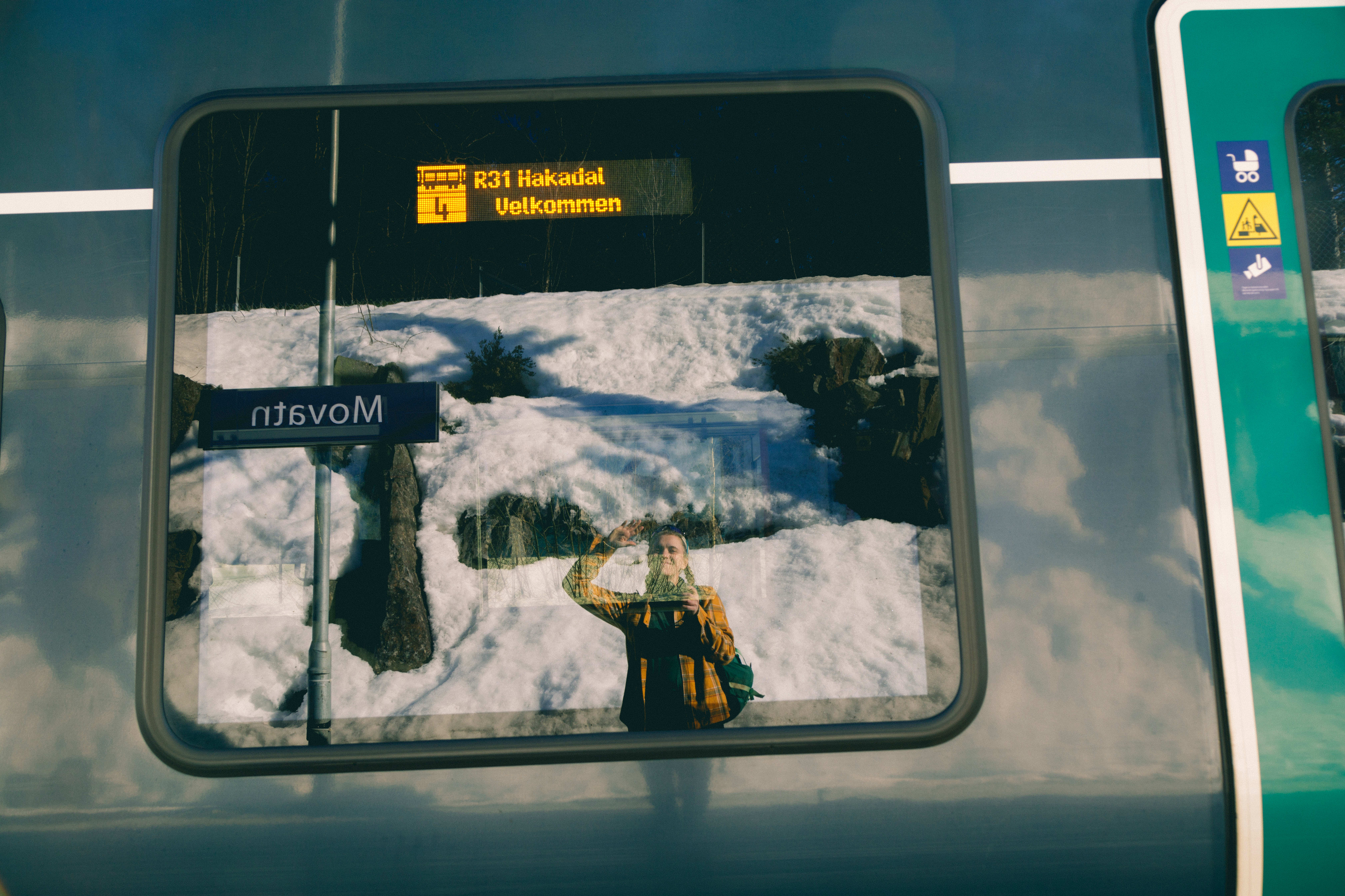 På togperrongen. Det første du gjør er å stige på gode, gamle Gjøvikbanen. Toget som tar deg gjennom byen og ut i Nordmarka.