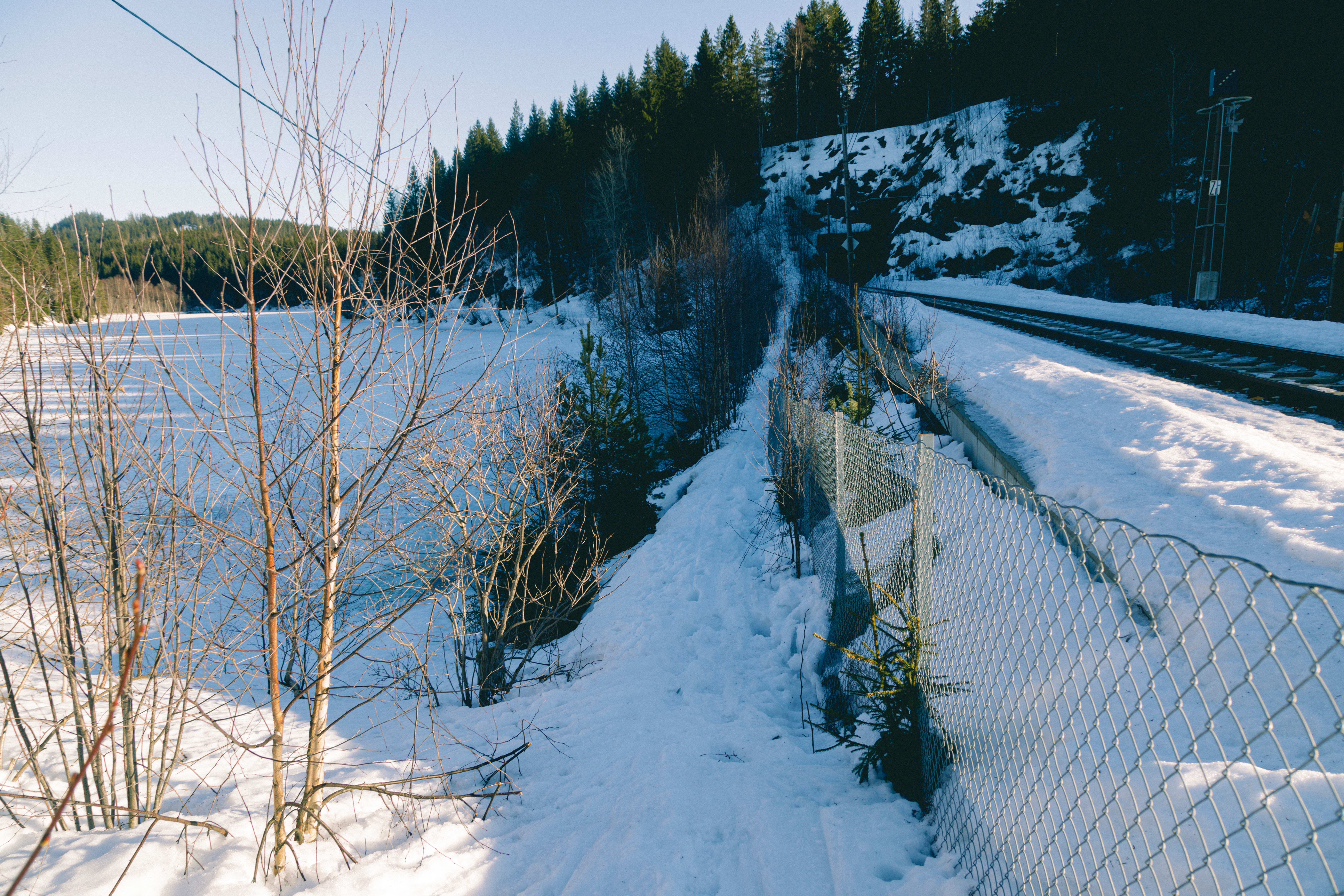 2. Gå til du ser planovergangen til jernbanen. Rett før den, tar du til venstre på en smal sti langs Nordre Movann. Du har da Nordre Movann til venstre for deg og jernbanelinjen på høyre side. Følg stien til enden, så er du i skisporet.