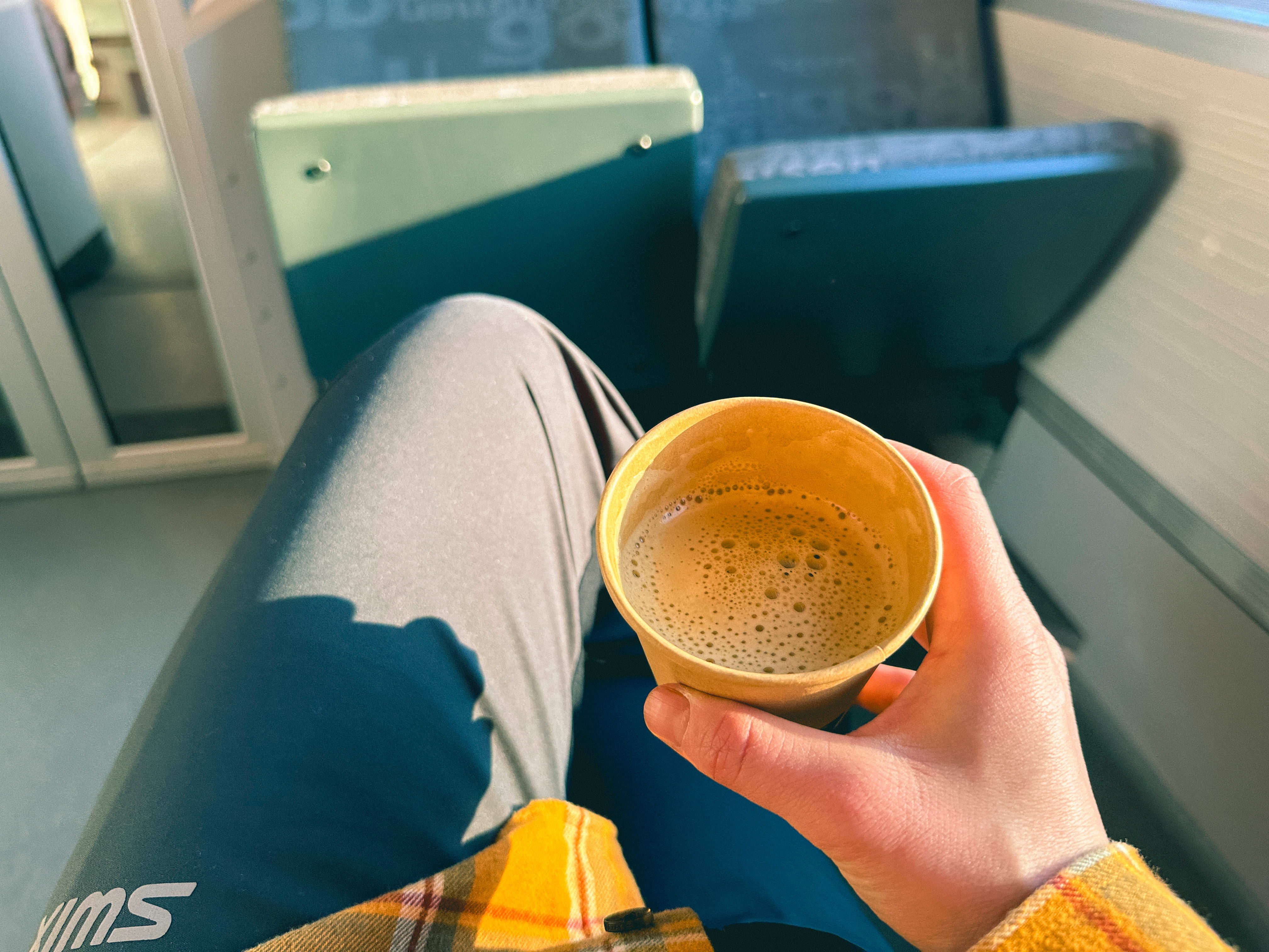 Rekker du ikke morgenkaffen, kan jeg informere om at det er kaffeautomat på toget.