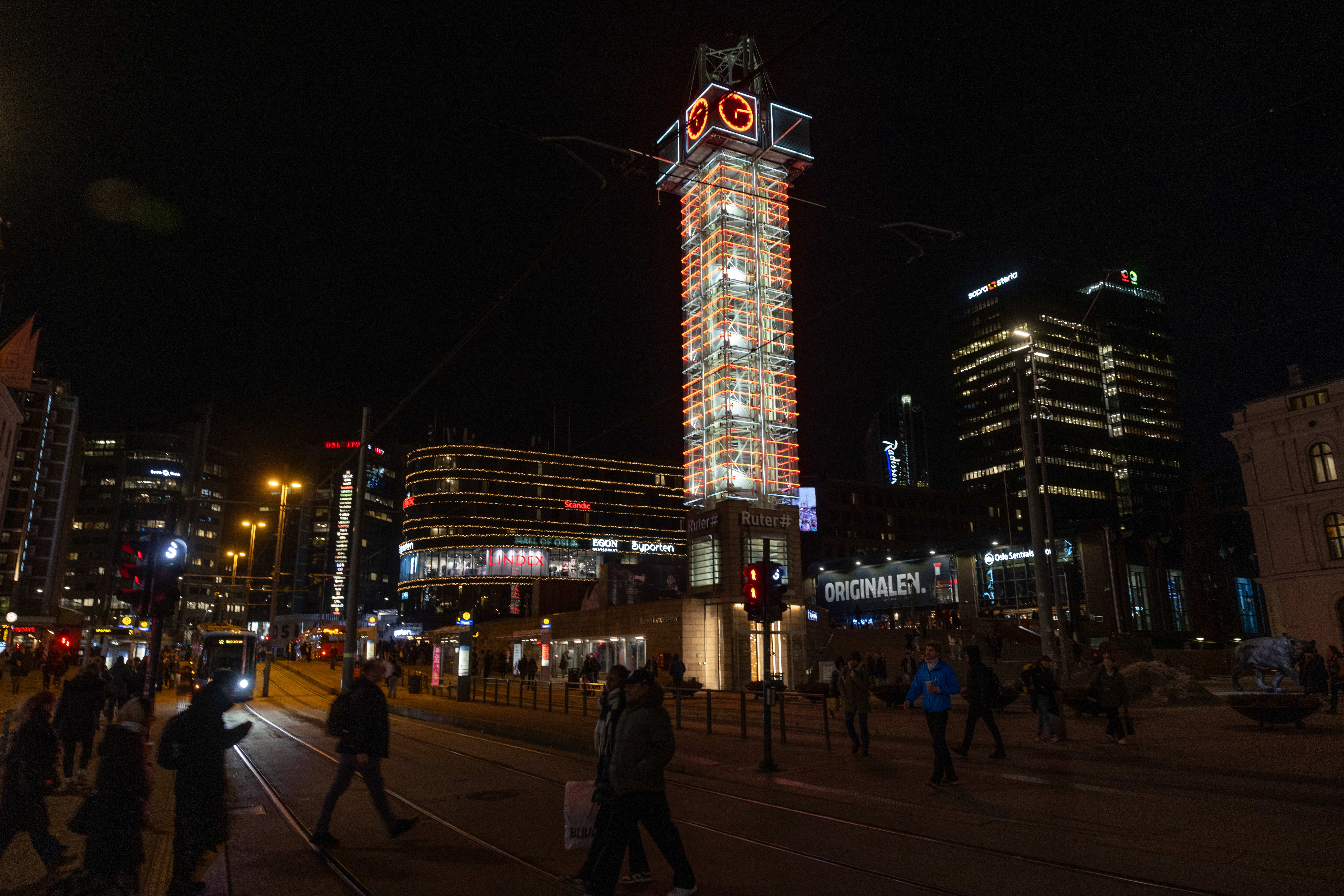 Løken kan også fortelle at lysinstallasjonen ble satt opp i forbindelse med byggingen av Jernbanetorget på 80-tallet (1987, for å være presis). Og til den som skulle mistenke at en slags ringeren av Notre-Dame skrur på lyset, kan Løken dessverre avkrefte det:
