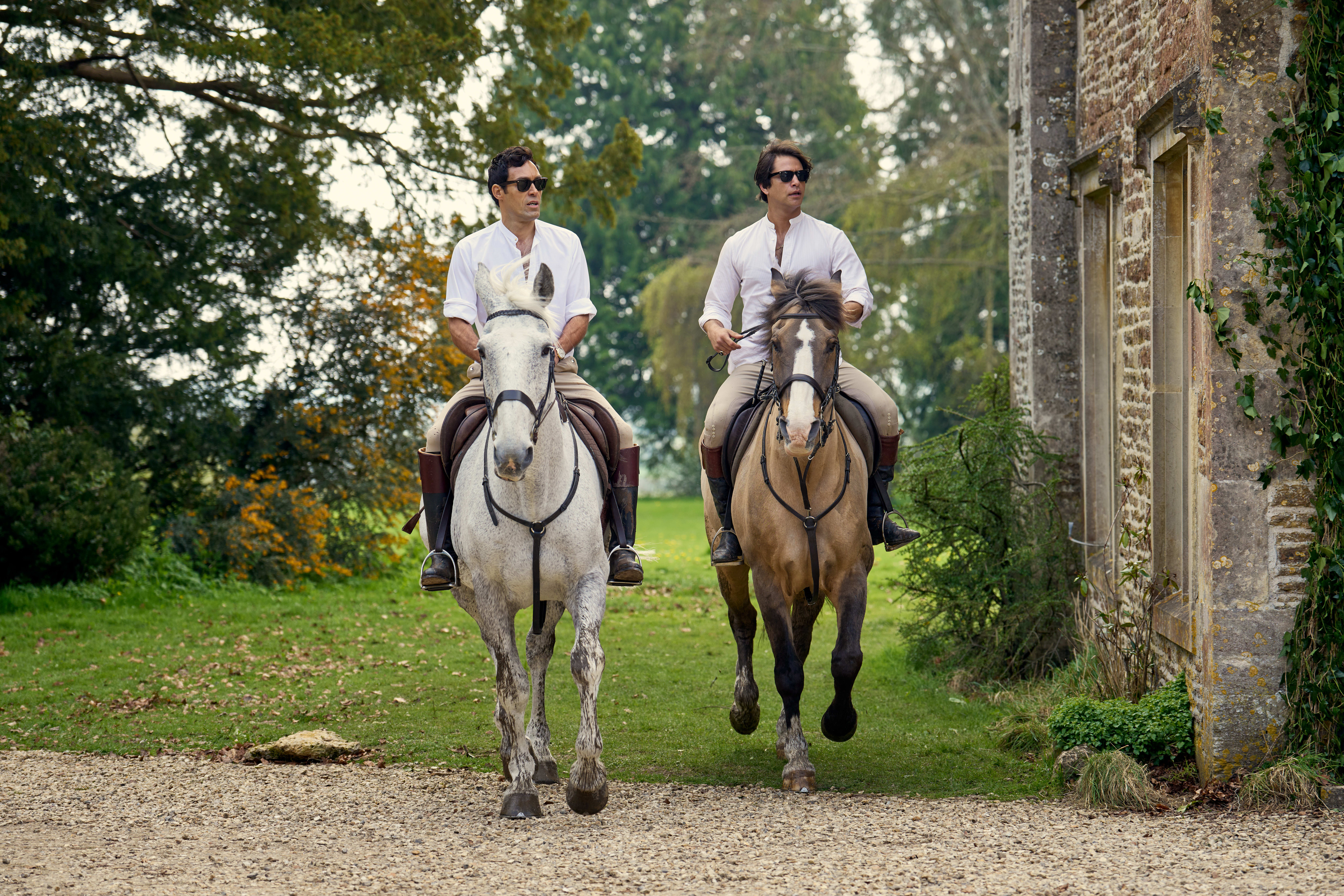 Alex Hassell spiller eks-olympier, sprangrytter og kåt hingst Rupert Campbell Black i «Rivals». Foto: Robert Viglasky / Disney+