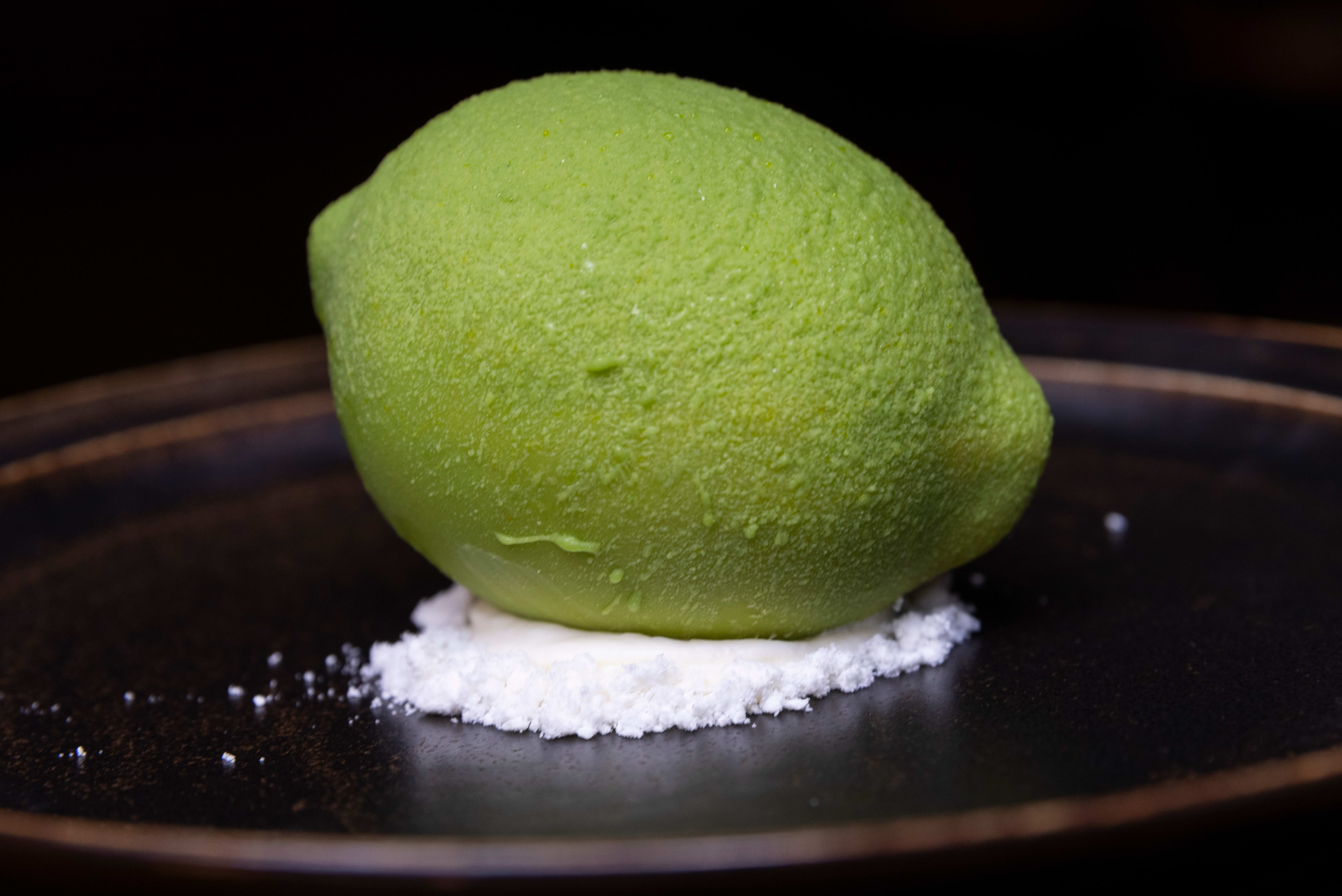 Alle fat er enkelt og vakkert anrettet – men måltidets visuelle høydepunkt er utvilsomt desserten – Realistic lime. Det som ser ut som en stor lime, som både har riktig tekstur og farge.