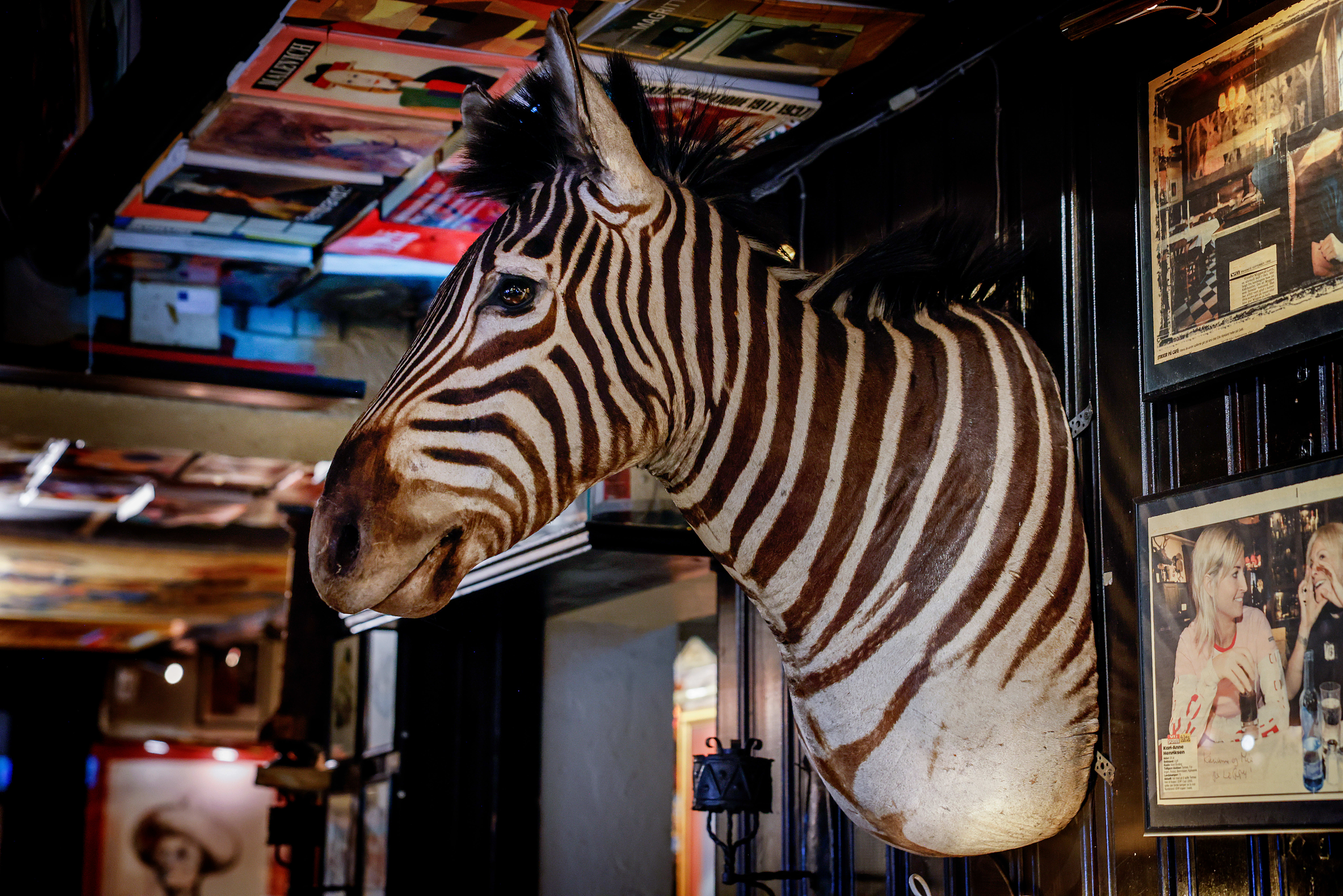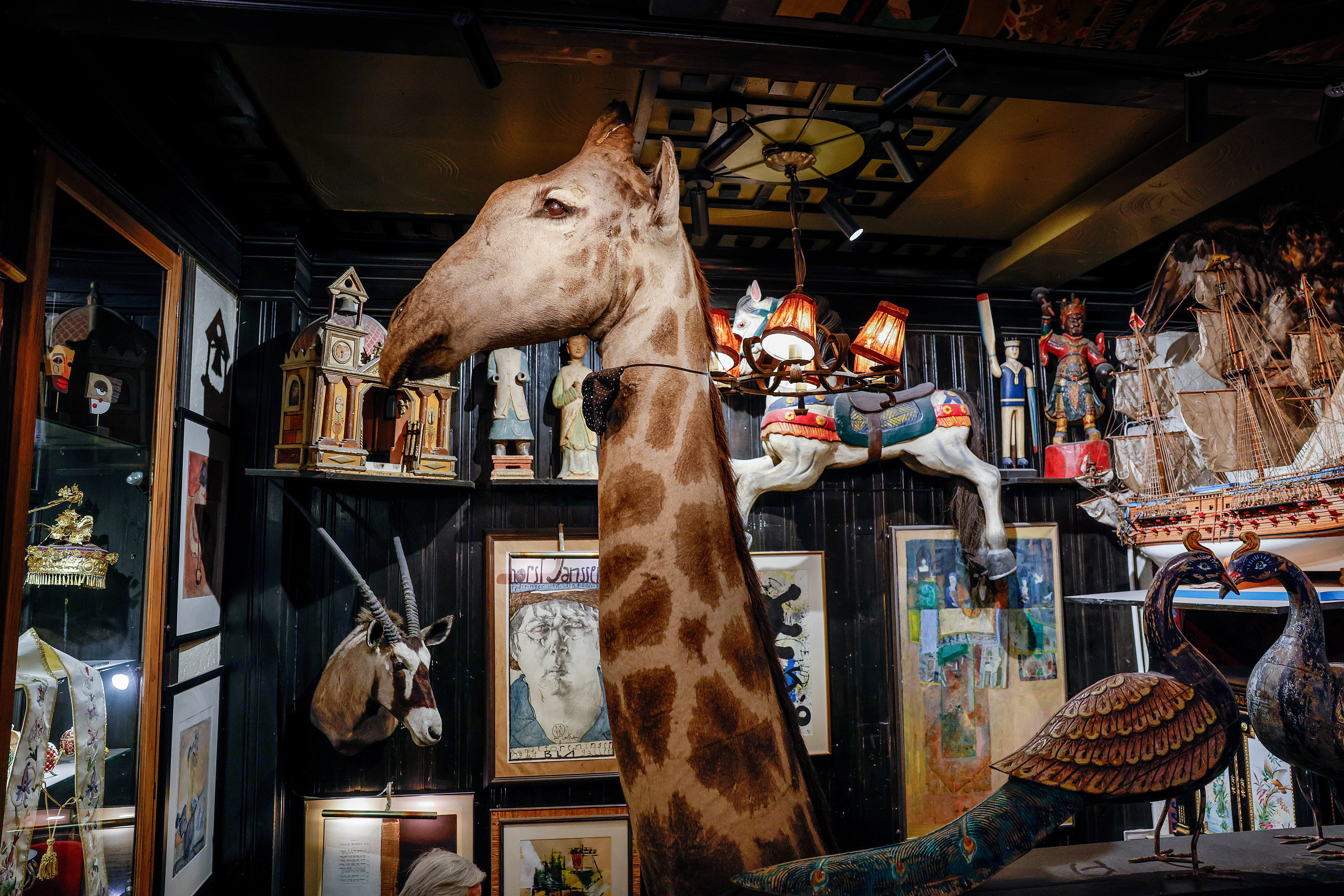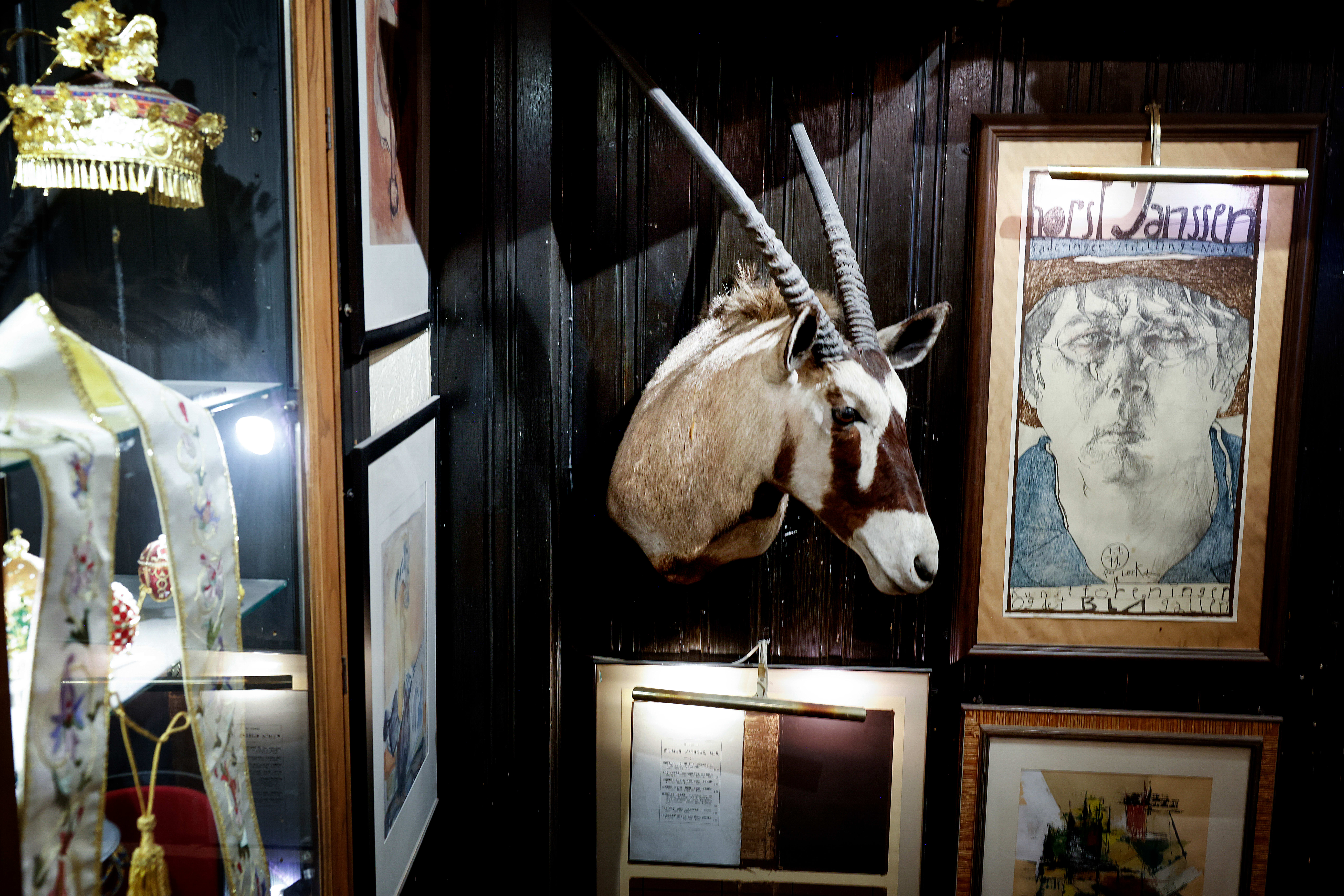 Du kan finne en visdomstann i en glassmonter eller en utstoppet sjiraff på den ene veggen, og kunst av Ari Behn, Joan Miró og Edvard Munch på den andre.