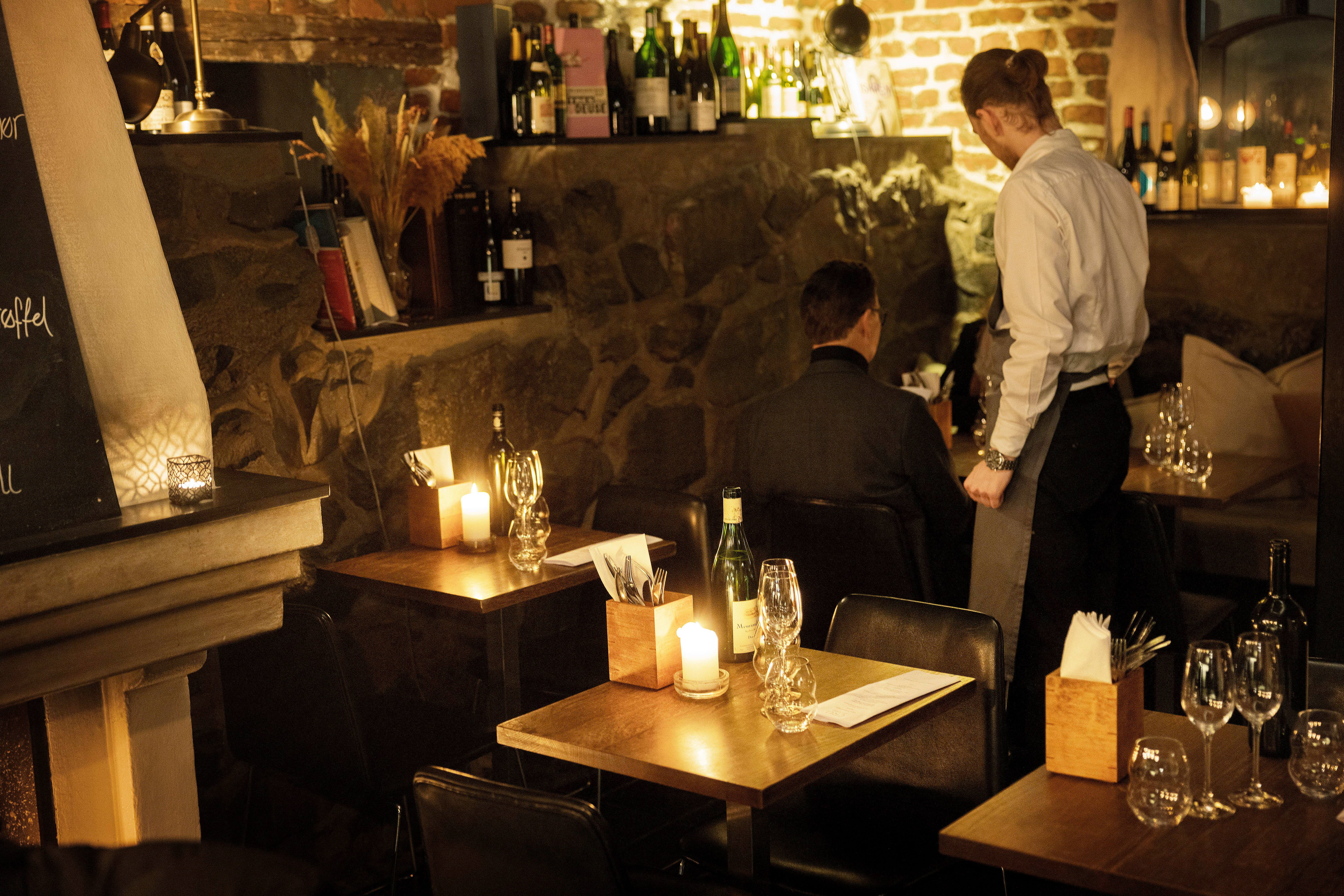Zind-Humbrecht Clos Häuserer Riesling 2019 fra Alsace er en bra priset riesling og byr på deilig duft av blomster, sitrus og moden frukt og flott balansert syre. Vi koser oss i den litt kjølige kjelleren, der ikke alle bordene har like god plassering. Servicen er bra, men ikke alltid like til stede. Det burde også være mulig å ha nedskrevne forslag til viner i ulike prisklasser til maten. Spesielt til de faste rettene, men også til dagens treretter. Det hadde nok gjort at de hadde solgt mer vin. Noen får bakoversveis av en Ipad med hundrevis av viner, og noen kvier seg for å spørre om råd.