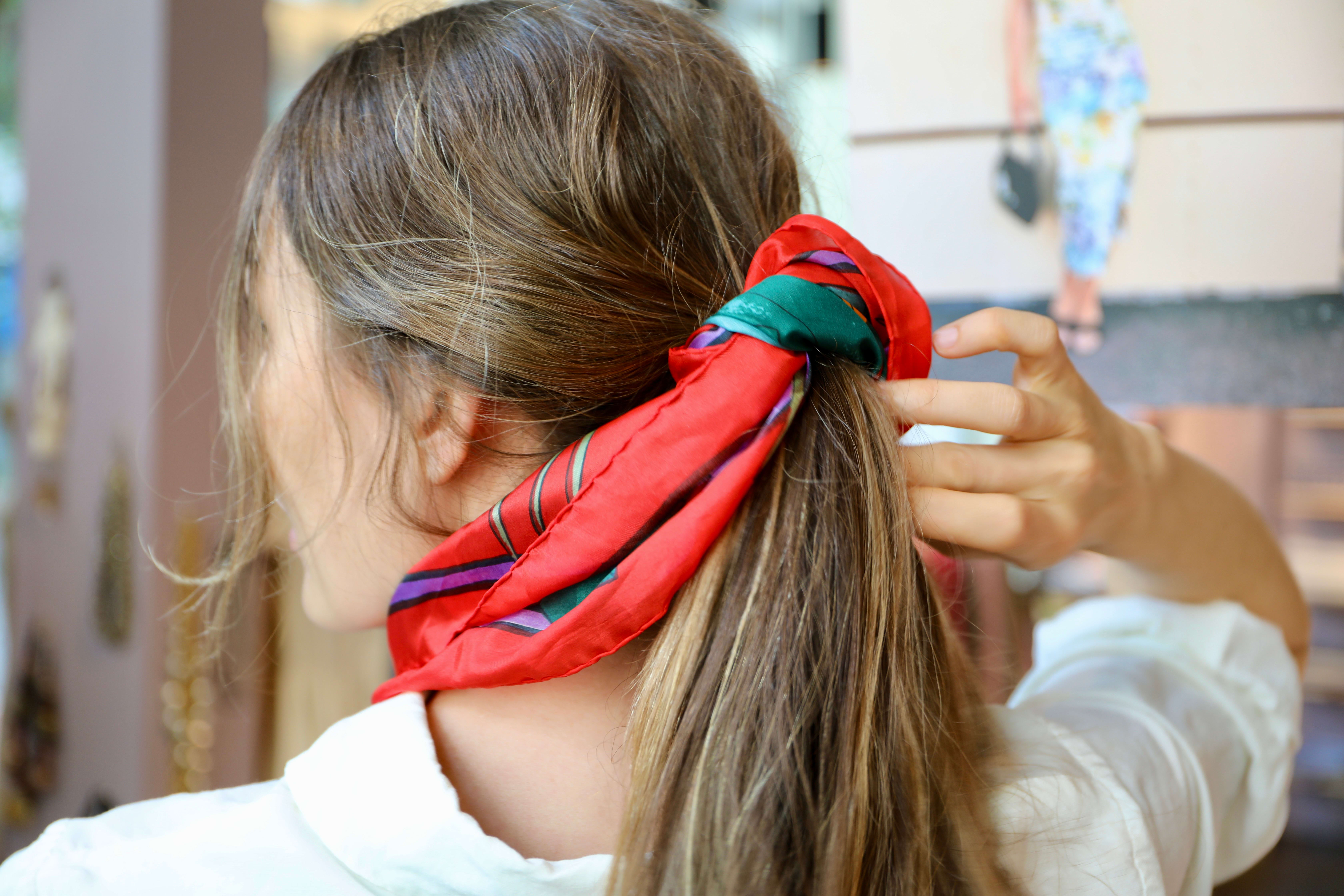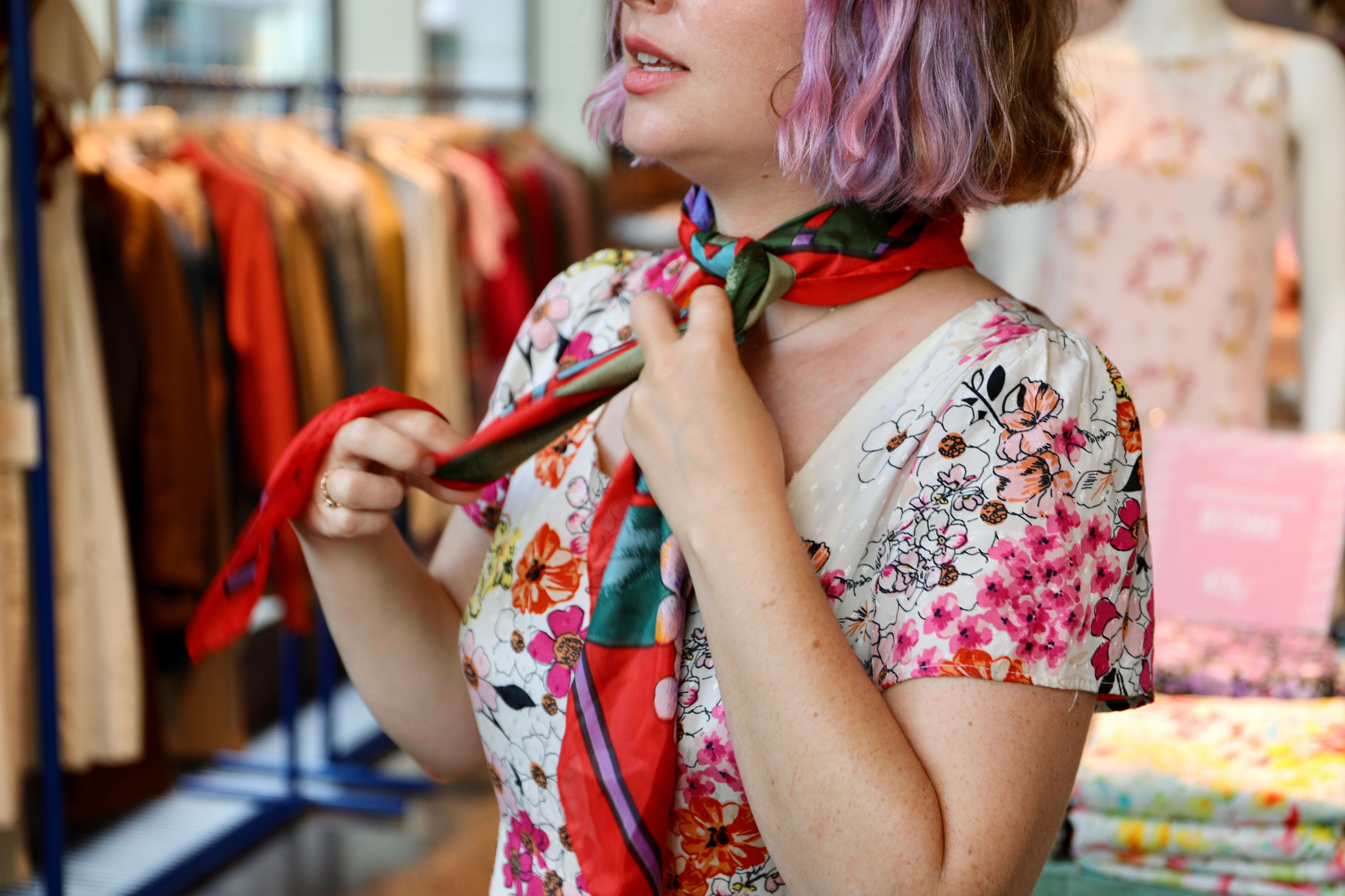 – Skaut på hodet er en fin, ofte fargerik og litt «quirky touch» man kan legge til et ellers tilbakelent antrekk, uten å gi slipp på komfort. Samtidig er det praktisk for å få håret vekk fra ansiktet.