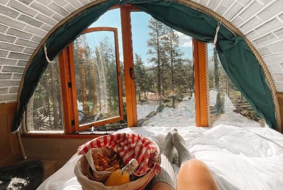 Overnatting: Kongleformet tretopphytte med gulvvarme, innlagt vann og strøm, dusj, toalett og kjøkken, dobbeltseng og soveplass for fire. Woodnest har nylig utvidet med et par enda mer eksklusive hytter med blant annet håndlaget tomannsbadekar i tre.