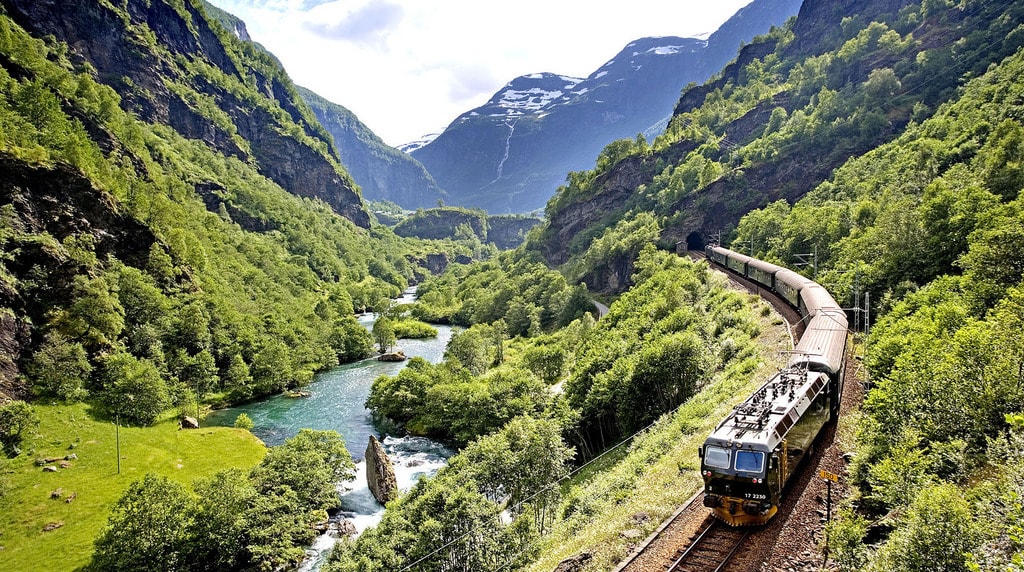 Ta historiske Flåmsbanen tilbake til Myrdal, som er en av Norges mest populære turistattraksjoner og en opplevelse i seg selv. Foto: De Historiske