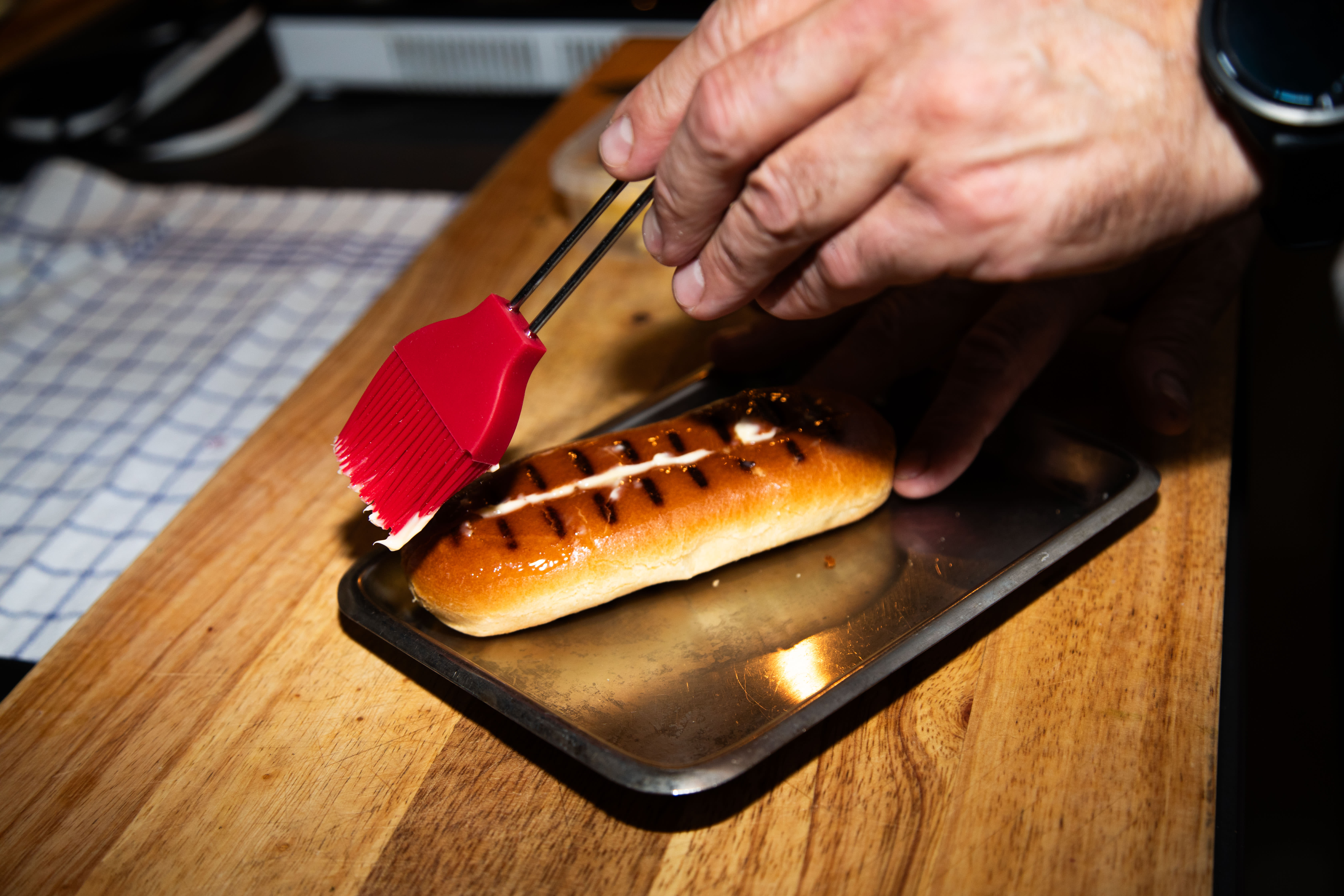 Et briochebrød grilles og pensles med meierismør.