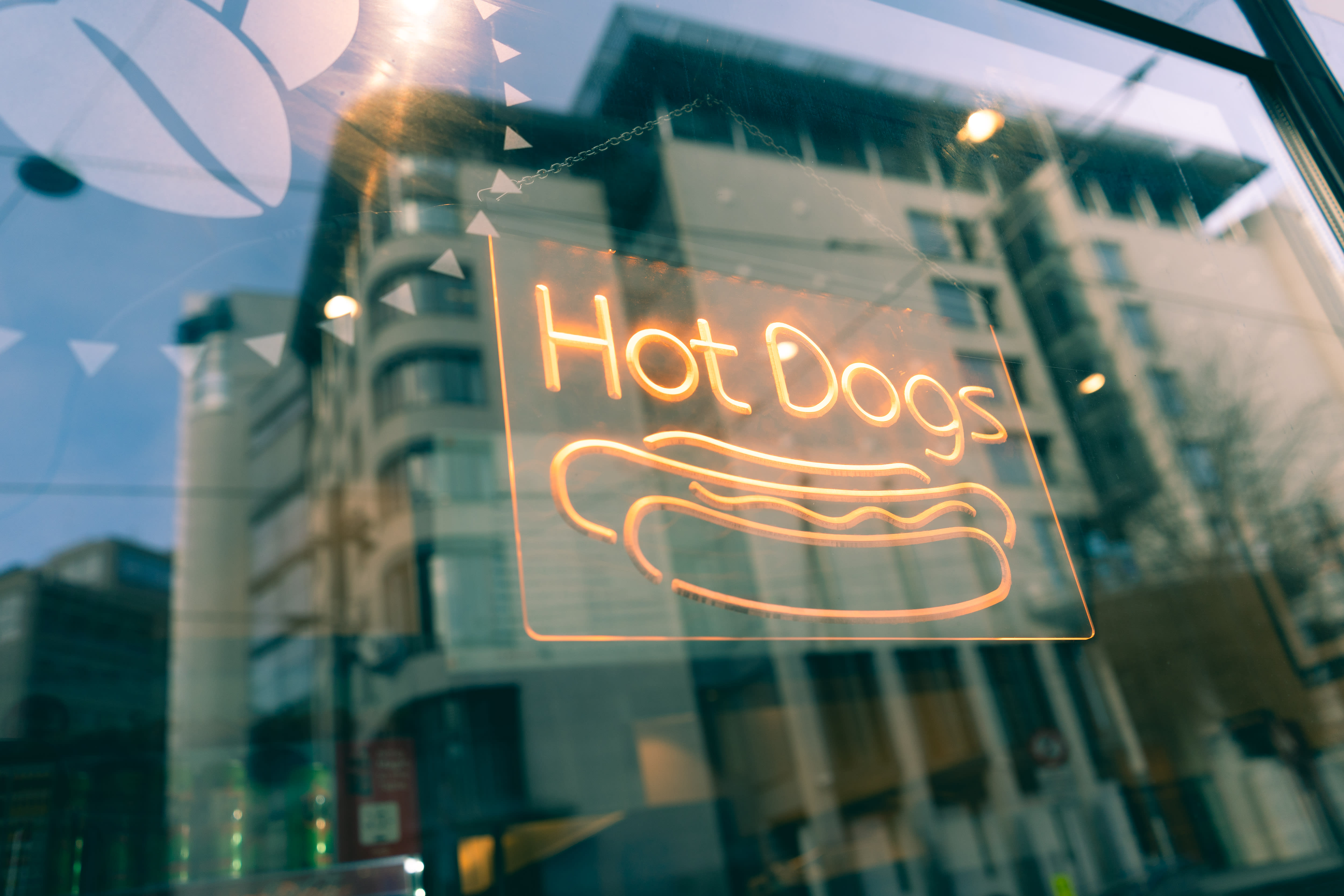 En fuktig kveld tok de oss med. Kroppen trengte salt og fett. Heldigvis har bua åpent til 03.00 i helgene. Vi kastet i oss hver vår pølse og nikket fornøyde.