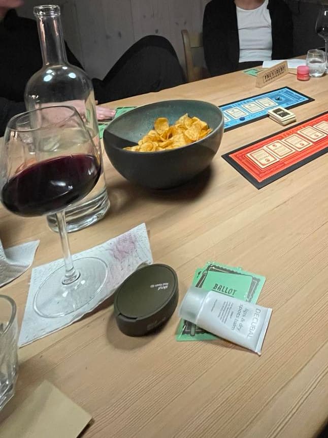 Og vinglasset og snusboksen.
