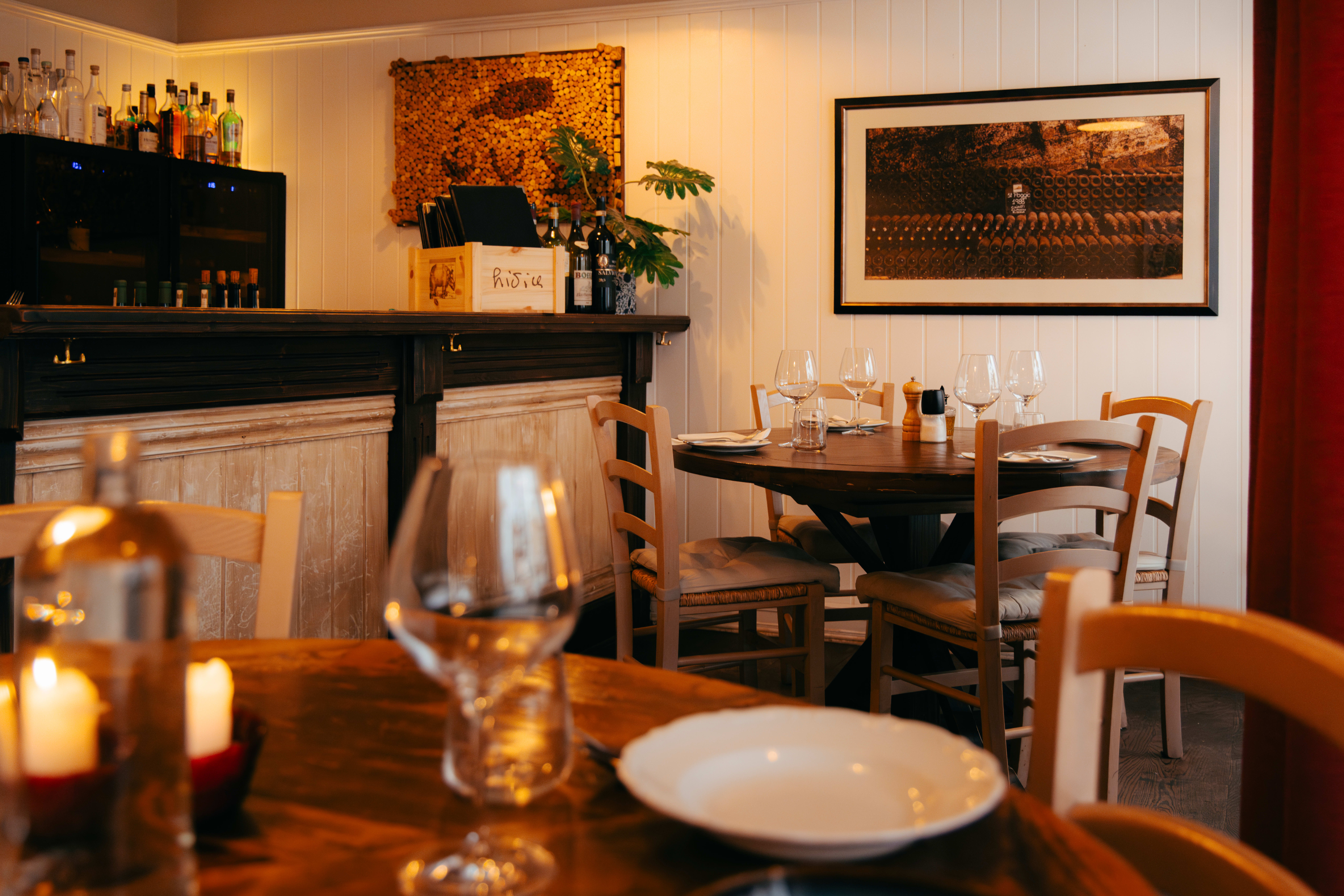Med bare en håndfull bord, bordbestilling på SMS, kun én bordsetning i løpet av kvelden og et ektepar som alene styrer hele skuta – han på kjøkkenet, hun ute i restauranten – finnes vel knapt en mer intim restaurant i Oslo. Det er nesten for intimt, dette er ikke stedet for private samtaler. Og det føles nesten som vi er på besøk hjemme hos familien Bono på Frogner.